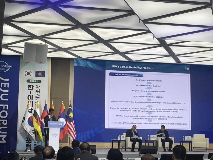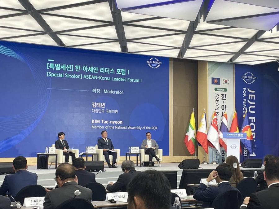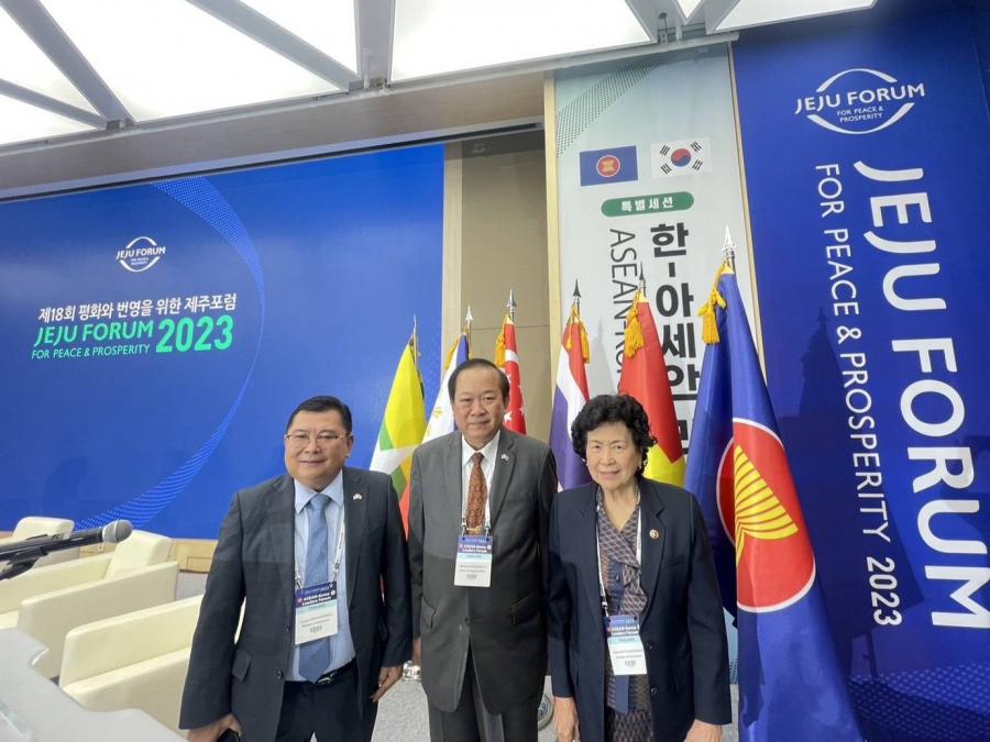 คณะผู้แทนรัฐสภาไทย นำโดย พล.ร.อ.อิทธิคมน์ ภมรสูต ร.น. สมาชิกวุฒิสภา พร้อมทั้ง นายประเสริฐ ปิ่นปฐมรัฐ สมาชิกวุฒิสภา และนางผาณิต นิติทัณฑ์ประภาศ สมาชิกวุฒิสภา เดินทางเข้าร่วมการประชุม ASEAN-Korea Leaders Forum ซึ่งเป็นวาระพิเศษภายใต้การประชุม Jeju Forum 2023 ระหว่างวันที่ 31 พ.ค. - 2 มิ.ย. 66 ณ เกาะเชจู สาธารณรัฐเกาหลี จัดโดยเขตปกครองพิเศษเกาะเชจู โดยมีประเทศสมาชิกอาเซียนเข้าร่วม ได้แก่ ผู้แทนสมาชิกรัฐสภาจากประเทศฟิลิปปินส์ ลาว มาเลเซีย ไทย เวียดนาม และภาคธุรกิจจากประเทศบรูไนและกัมพูชา รวมทั้งผู้แทนจากองค์กรสมัชชารัฐสภาอาเซียน (ASEAN Inter-Parliamentary Assembly-AIPA) และคณะทูตานุทูต