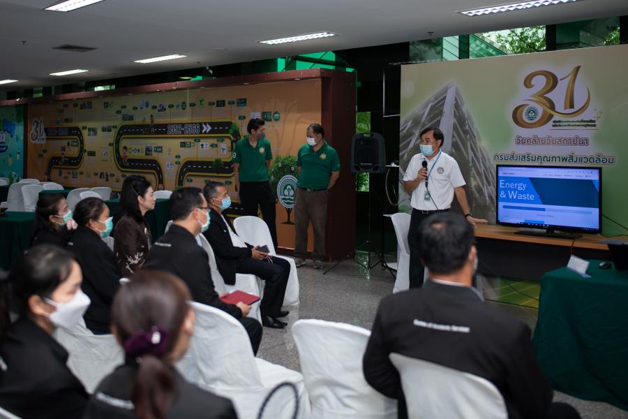 เมื่อวันพฤหัสบดีที่ 8 มิถุนายน 2566 เวลา 13.00 -16.00 นาฬิกา ณ ห้องประชุมอารีย์สัมพันธ์ กรมส่งเสริมคุณภาพสิ่งแวดล้อม นางจงเดือน สุทธิรัตน์  ที่ปรึกษาด้านระบบงานนิติบัญญัติ ในฐานะประธานคณะกรรมการขับเคลื่อนสำนักงานเลขาธิการสภาผู้แทนราษฎรเป็นสำนักงานสีเขียว (Green Office) และนายมานิช อินทฉิม ผู้อำนวยการสำนักวิชาการ ในฐานะประธานอนุกรรมการดำเนินงานสำนักงานสีเขียว ด้านการติดตามและประเมินผลได้นำคณะบุคลากรของสำนักวิชาการ ซึ่งเป็นหนึ่งในยูนิตของสำนักงานเลขาธิการสภาผู้แทนราษฎรที่ขอรับการประเมินเครื่องหมาย G-Green ของกรมส่งเสริมคุณภาพสิ่งแวดล้อม เข้าศึกษาดูงานการที่มีแนวปฏิบัติที่เป็นเลิศ (Best Practice) ด้านสิ่งแวดล้อม  ในการนี้ นายสมศักดิ์ สรรพโกศลกุล อธิบดีกรมส่งเสริมคุณภาพสิ่งแวดล้อมพร้อมคณะผู้บริหารให้การต้อนรับคณะ และนางสาวอุมา ศรีสุข ผู้อำนวยการกองส่งเสริมการมีส่วนร่วมของประชาชน บรรยายให้ความรู้  หัวข้อ "แนวทางการจัดการสิ่งแวดล้อมกรมส่งเสริมคุณภาพสิ่งแวดล้อม" จากนั้น ได้ลงพื้นที่ศึกษาตามฐานการเรียนรู้ ซึ่งคณะศึกษาดูงานจะได้นำความรู้ไปประยุกต์ใช้ในการดำเนินงานด้านสิ่งแวดล้อมของสำนักงานเลขาธิการสภาผู้แทนราษฎรต่อไป