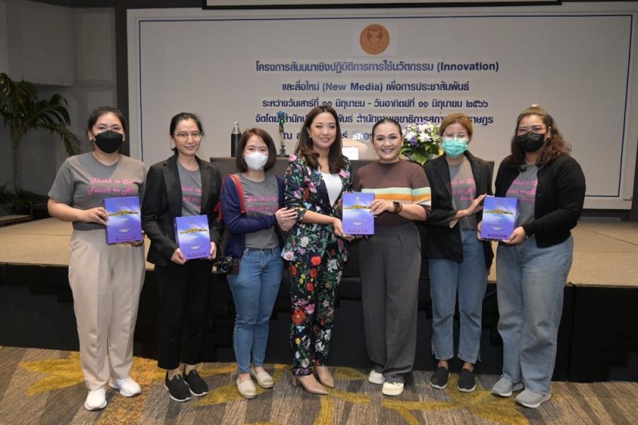 จากนั้น เวลา 11.30 นาฬิกา เป็นการฝึกปฏิบัติการใช้นวัตกรรม (Innovation) และสื่อใหม่ (New Media) เพื่อการประชาสัมพันธ์ โดย น.ส.นริศรา เชี่ยวพัฒนาเจริญ  กรรมการผู้จัดการ บริษัท โกรท เทรดดิ้ง แอนด์ โซลูชั่น จำกัด และทีมงาน