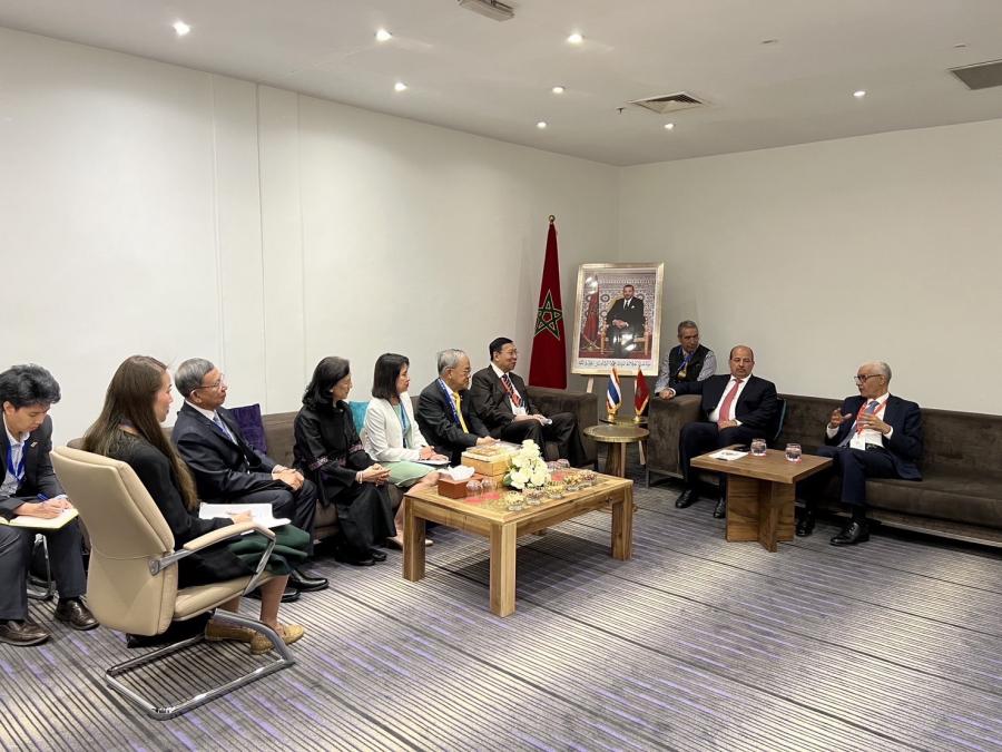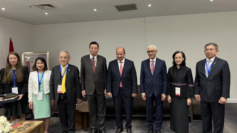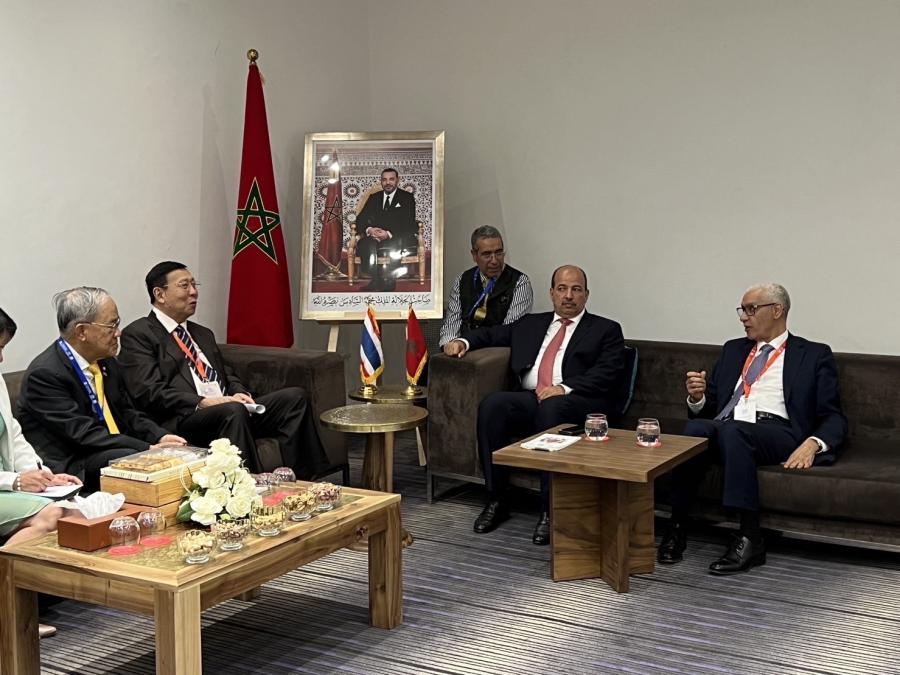ประธานวุฒิสภา นำคณะผู้แทนรัฐสภาไทยได้เข้าพบปะหารือทวิภาคีกับ Mr. Rachid Talbi El Alami ประธานสภาผู้แทนราษฎรโมร็อกโกและ Mr. Naam Miyara ประธานวุฒิสภา ในช่วงการเข้าร่วมประชุมภาครัฐสภาว่าด้วยการสานเสวนาระหว่างศาสนา (Parliamentary Conference on Interfaith Dialogue) ณ เมืองมาร์ราเกช ราชอาณาจักรโมร็อกโก เป็นวันที่สอง