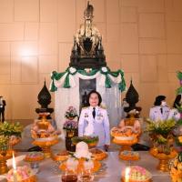 โอกาสนี้ ศ.พิเศษพรเพชร วิชิตชลชัย ประธานวุฒิสภา ทำหน้าที่ประธานรัฐสภา หลั่งน้ำบูชาพระบรมรูปหล่อจำลอง รัชกาลที่ 5  และแผ่นป้ายพระบรมราชานุสาวรีย์ รัชกาลที่ 7 จากนั้น ถวายพวงมาลัย และโปรยข้าวตอกดอกไม้ จุดธูปเทียน เครื่องทองน้อย และเปิดกรวยดอกไม้ ต่อมา จุดธูปเทียนด้านหน้าเครื่องบวงสรวง และปักธูปบนเครื่องบวงสรวง และกล่าวคำถวายราชสดุดี