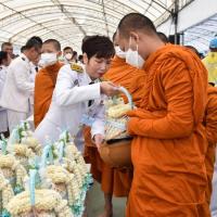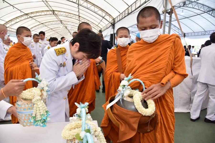 นางวัชราภรณ์ รัตนโกเศศ จันทรเจริญ ที่ปรึกษาด้านกฎหมาย ร่วมพิธีทำบุญตักบาตรถวายพระราชกุศล ณ ท้องสนามหลวง