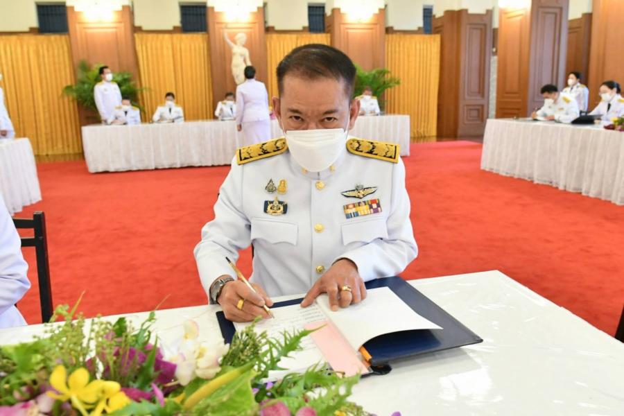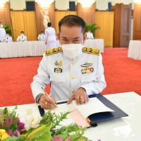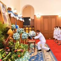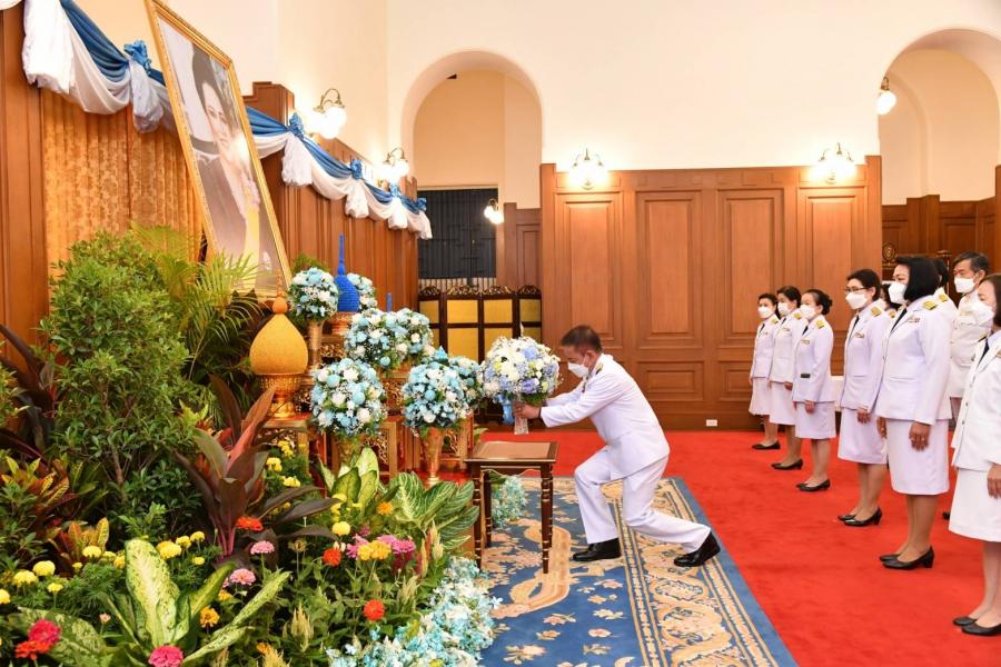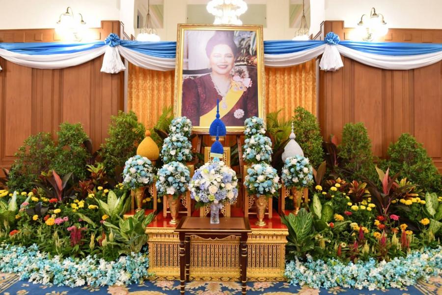 นายกฤษณะ จ้วงสินธุ์ ที่ปรึกษาด้านระบบงานนิติบัญญัติ ถวายแจกันดอกไม้ เบื้องหน้าพระบรมฉายาลักษณ์สมเด็จพระนางเจ้าสิริกิติ์ พระบรมราชินีนาถ พระบรมราชชนนีพันปีหลวง พร้อมลงนามถวายพระพรฯ ณ พระบรมมหาราชวัง
