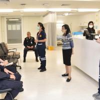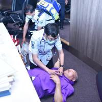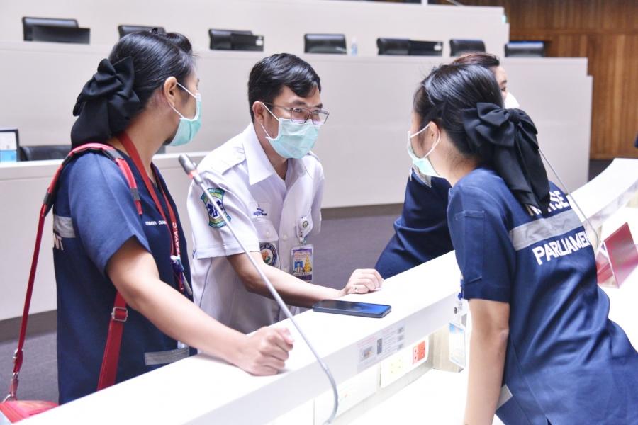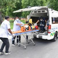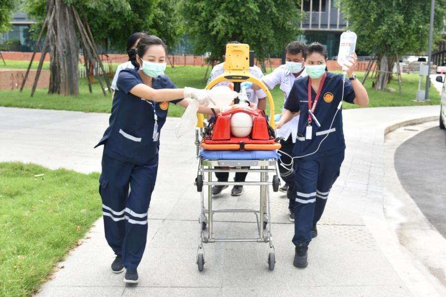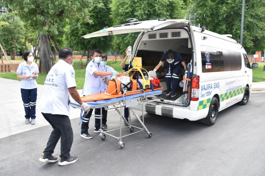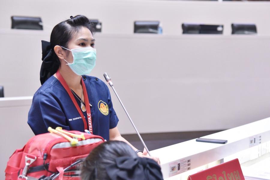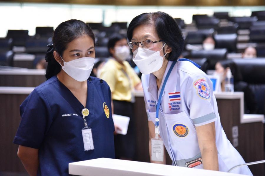 นายสาธิต ประเสริฐศักดิ์ และ น.ส.กัลยรัชต์ ขาวสำอางค์ รองเลขาธิการสภาผู้แทนราษฎร พร้อมด้วยผู้บริหารซักซ้อมแผนปฏิบัติการด้านการแพทย์ฉุกเฉินและการลำเลียงผู้ป่วยวิกฤตฉุกเฉินส่งโรงพยาบาล