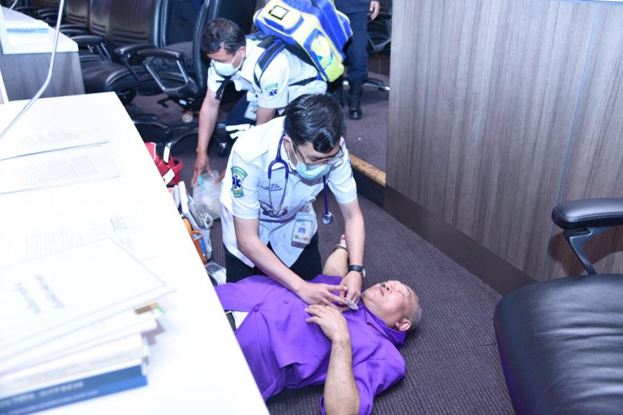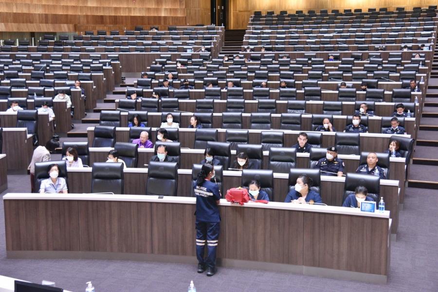 วันศุกร์ที่ 1 กันยายน 2566 เวลา 09.00–12.00 นาฬิกา นายสาธิต ประเสริฐศักดิ์ และ น.ส.กัลยรัชต์ ขาวสำอางค์ รองเลขาธิการสภาผู้แทนราษฎร พร้อมด้วยผู้บริหารสำนักงานเลขาธิการสภาผู้แทนราษฎร และบุคลากรที่ปฏิบัติงานเกี่ยวข้องกับการประชุมสภาเข้าร่วมซักซ้อมแผนปฏิบัติการด้านการแพทย์ฉุกเฉินและการลำเลียงผู้ป่วยวิกฤตฉุกเฉินส่งโรงพยาบาล เพื่อเตรียมความพร้อมสำหรับการพยาบาลผู้ป่วยเบื้องต้นและปฏิบัติการทางการแพทย์ฉุกเฉิน ณ จุดเกิดเหตุในวันที่มีการประชุมสภาผู้แทนราษฎร อาทิ ห้องประชุมสภาผู้แทนราษฎร และห้องพยาบาล ชั้น 2 อาคารรัฐสภา และอาคารจอดรถ ชั้น B1 รวมทั้งบริเวณริมแม่น้ำเจ้าพระยา
