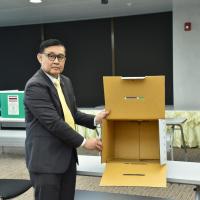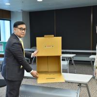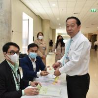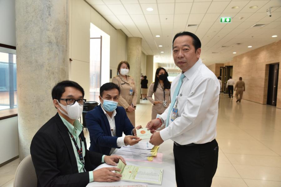 วันจันทร์ที่ 11 กันยายน 2566 เวลา 8.00 นาฬิกา ณ ห้องประชุม 602 ชั้น 6 อาคารรัฐสภา นายศิโรจน์ แพทย์พันธุ์ พร้อมด้วย น.ส.ศุภพรรัตน์ สุขพุ่ม รองเลขาธิการสภาผู้แทนราษฎร ผู้บริหารและบุคลากรสำนักงานเลขาธิการสภาผู้แทนราษฎร เข้าร่วมเลือกกรรมการข้าราชการรัฐสภา (ก.ร.) แทนตำแหน่งที่ว่าง จำนวน 2 คน โดยมี นายณัฐพัฒน์ พัดทอง ประธานกรรมการอำนวยการเลือกผู้แทนข้าราชการรัฐสภาสามัญเป็นกรรมการข้าราชการรัฐสภา (ก.ร.) เป็นประธานเปิดหีบการเลือกผู้แทนข้าราชการฯ ซึ่งมีกรรมการเลือกผู้แทนข้าราชการรัฐสภาสามัญฯ บุคลากรสำนักงานเลขาธิการสภาผู้แทนราษฎร เป็นสักขีพยาน