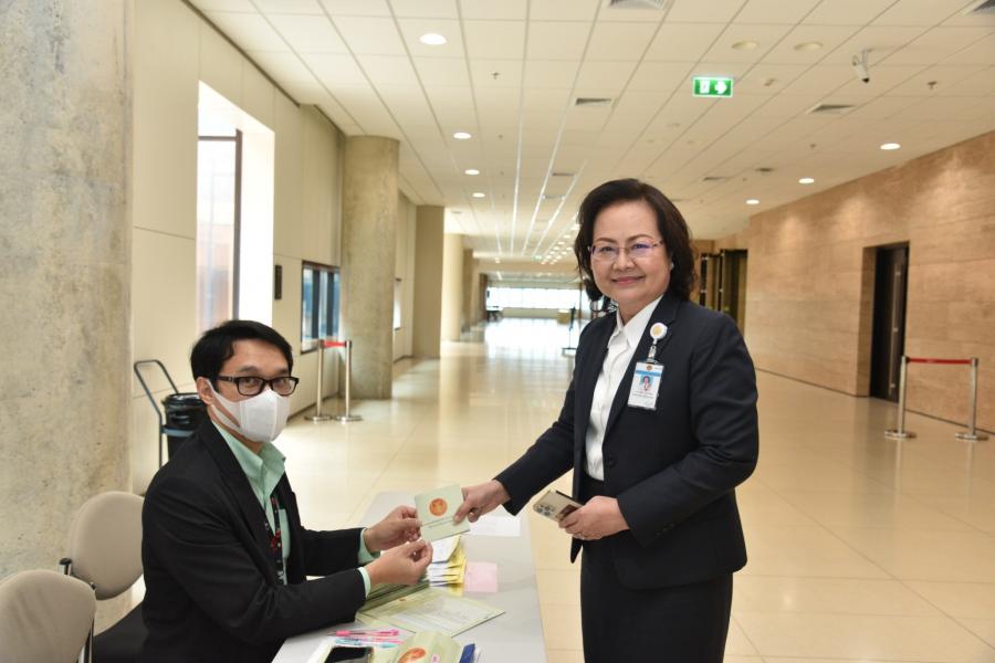 วันจันทร์ที่ 11กันยายน 2566 เวลา 12.05 นาฬิกา ณ ห้องประชุม 602 ชั้น 6 อาคารรัฐสภา นางพรพิศ เพชรเจริญ เลขาธิการสภาผู้แทนราษฎร พร้อมด้วยนายคุณวุฒิ ตันตระกูล ว่าที่ ร.ต.ต.อาพัทธ์ สุขะนันท์ นายสาธิต ประเสริฐศักดิ์ น.ส.สตีจิตร ไตรพิบูลย์สุข รองเลขาธิการสภาผู้แทนราษฎร นายณัฏฐกฤษฎ์ วงศ์เจริญ นางอารยะหญิง จอมพลาพล นายกฤษณะ จ้วงสินธุ์ ที่ปรึกษาด้านระบบงานนิติบัญญัติ พร้อมด้วย ผู้บริหารและบุคลากรสำนักงานเลขาธิการสภาผู้แทนราษฎร เข้าร่วมเลือกกรรมการข้าราชการรัฐสภา (ก.ร.) แทนตำแหน่งที่ว่าง จำนวน 2 ตำแหน่ง