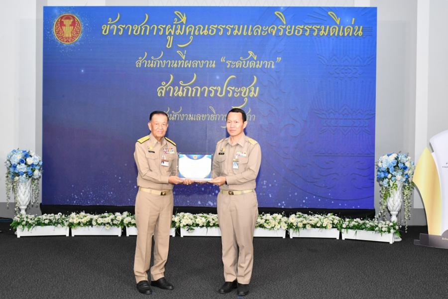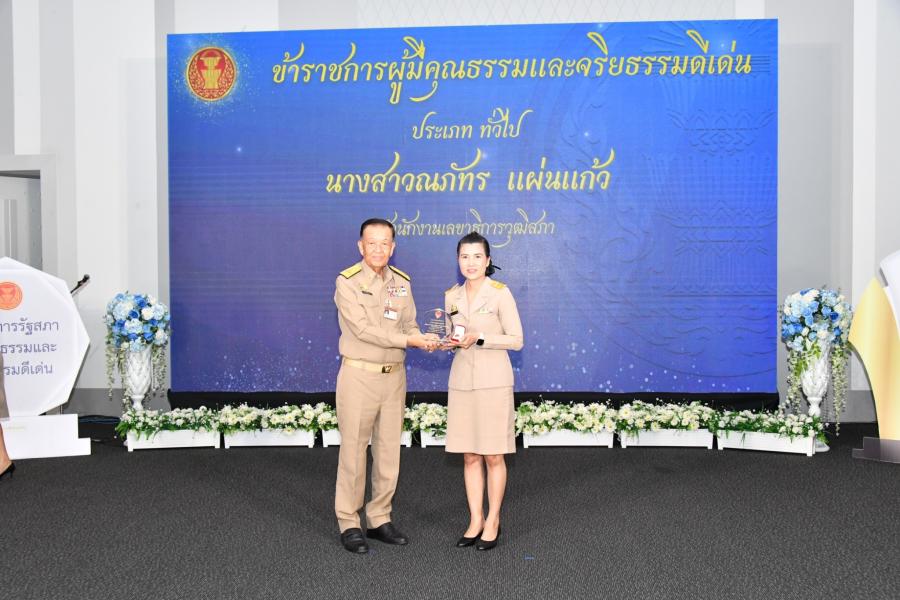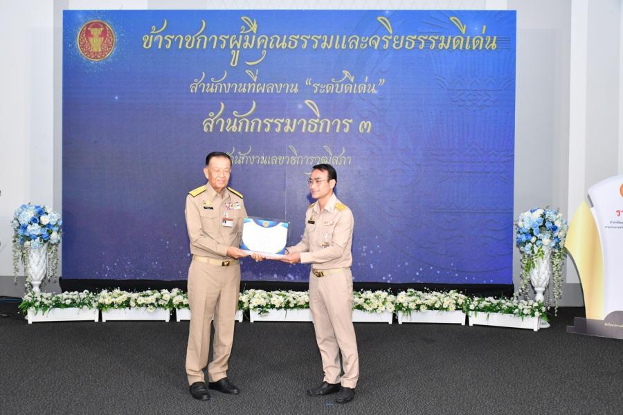 ประธานรัฐสภา เป็นประธานในพิธีเปิดโครงการส่งเสริมการปฏิบัติตามประมวลจริยธรรมข้าราชการรัฐสภา : วันแห่งคุณธรรมและจริยธรรม และมอบเข็มเชิดชูเกียรติ โล่ยกย่องประกาศเกียรติคุณ พร้อมทั้งเกียรติบัตรแก่ผู้มีคุณธรรม จริยธรรมดีเด่น และสำนักที่มีผลงานด้านการส่งเสริมตามประมวลจริยธรรมข้าราชการรัฐสภาและความโปร่งใส ประจำปีงบประมาณ พ.ศ. 2566 (ต่อ)
