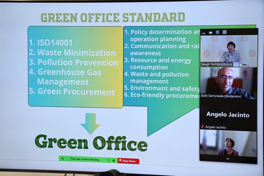 ซึ่งได้นำหลักเกณฑ์สำนักงานสีเขียวของกรมการเปลี่ยนแปลงสภาพภูมิอากาศและสิ่งแวดล้อม กระทรวงทรัพยากรธรรมชาติและสิ่งแวดล้อม มาประยุกต์ใช้ในการดำเนินการ และนำไปสู่มาตรการและกิจกรรมต่าง ๆที่สำคัญ อาทิ การลดการบริโภคพลังงานและทรัพยากร การส่งเสริมพฤติกรรมการบริโภคโดยยึดหลัก 3R (Reduce, Reuse, Recycle) และการนำเทคโนโลยีดิจิทัลมาใช้ในการปฏิบัติงานให้เป็นมิตรกับสิ่งแวดล้อม