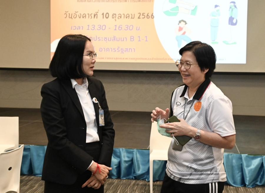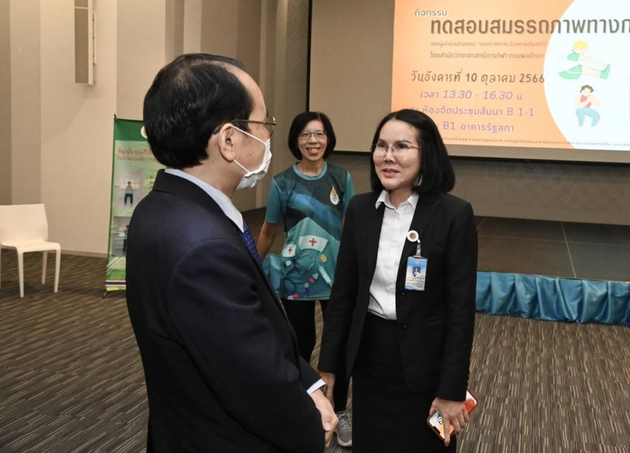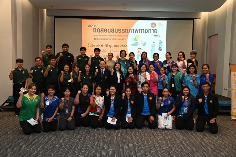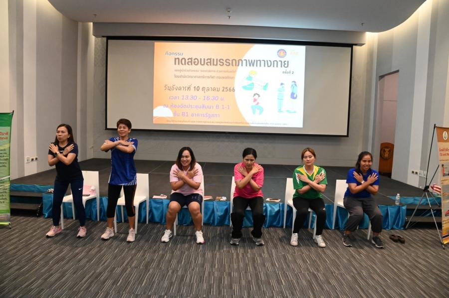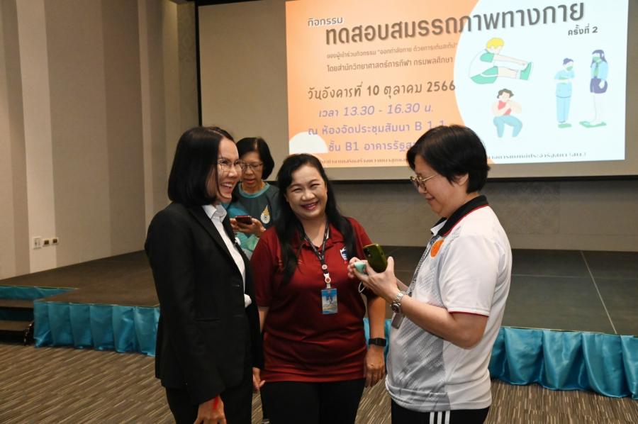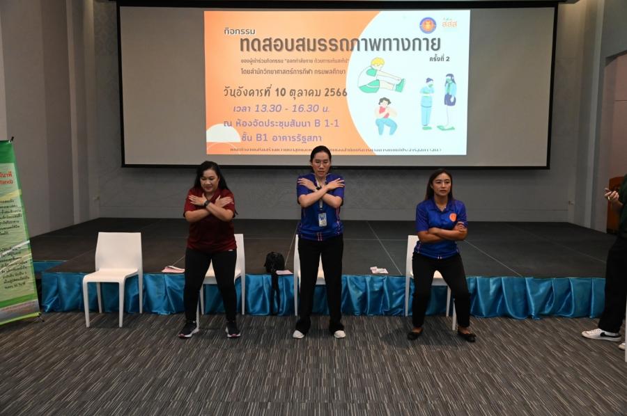 วันอังคารที่ 10 ตุลาคม 2566 เวลา 13.3016.30 นาฬิกา ณ ห้องประชุมสัมมนา B11 ชั้น B1 อาคารรัฐสภา น.ส.กัลยรัชต์ ขาวสำอางค์ รองเลขาธิการสภาผู้แทนราษฎร พร้อมด้วยคณะผู้บริหาร และบุคลากรของสำนักงานเลขาธิการสภาผู้แทนราษฎร เข้าร่วมการทดสอบสมรรถภาพทางกาย ในกิจกรรม ออกกำลังกายด้วยการเต้นสเต็ป ครั้งที่ 2 โดยเจ้าหน้าที่จากสำนักวิทยาศาสตร์การกีฬา กรมพลศึกษา กระทรวงการท่องเที่ยวและกีฬา เพื่อเปรียบเทียบผลก่อนและหลังเข้าร่วมกิจกรรม ออกกำลังกายด้วยการเต้นสเต็ป
