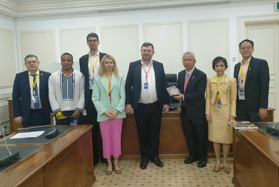 ทางด้านฝ่ายไทยย้ำถึงแนวทางการต่างประเทศของไทยที่ยึดมั่นในแนวทางการไม่เผชิญหน้าและการรักษาความสัมพันธ์ที่ดีกับทุกฝ่าย รวมถึงระบบพหุภาคีที่วางอยู่บนกฎกติการะหว่างประเทศที่ยอมรับร่วมกันโดยเฉพาะหลักการภายใต้กฎบัตรสหประชาชาติมาโดยตลอด รวมถึงวางอยู่บนสมดุลระหว่างผลประโยชน์แห่งชาติและพันธกรณีระหว่างประเทศของไทย นอกจากนี้ ไทยยังสนับสนุนความริเริ่มของ IPU ในการจัดตั้ง special task force on Ukraine และผลการทำงานในปีที่ผ่านมาที่ได้พยายามสานเสวนาระหว่างทั้งสองฝ่ายผ่านการทูตรัฐสภา เพื่อแสวงหาหนทางคลี่คลายความขัดแย้งโดยสันติวิธี ทั้งนี้ รัฐสภาไทยจะใช้อำนาจนิติบัญญัติกำกับตรวจสอบการดำเนินการต่างประเทศของฝ่ายบริหาร เพื่อให้แนวทางการลงมติของในสหประชาชาติของไทยมีความเสมอต้นเสมอปลายและวางอยู่บนหลักการอันชอบด้วยกฎหมายและบรรทัดฐานระหว่างประเทศ