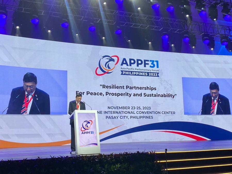 เมื่อวันพฤหัสบดีที่ 23 พฤศจิกายน 2566 เวลา 16.30 นาฬิกา ณ ศูนย์การประชุมนานาชาติฟิลิปปินส์ ศาสตราจารย์พิเศษพรเพชร วิชิตชลชัย ประธานวุฒิสภาและรองประธานรัฐสภาในฐานะหัวหน้าคณะผู้แทนรัฐสภาไทยได้ขึ้นกล่าวในพิธีเปิดการประชุม APPF ครั้งที่ 31 ในนามของประเทศเจ้าภาพจัดการประชุม APPF ครั้งที่ 30 เมื่อปี 2565 โดยมีสมาชิกจาก 19 ประเทศและผู้แทนรัฐสภากว่า 230 คนเข้าร่วมรับฟัง ศาสตราจารย์พิเศษพรเพชร วิชิตชลชัยได้กล่าวว่า ในฐานะประเทศเจ้าภาพจัดการประชุม APPF ครั้งที่ 30 รัฐสภาไทยมีความยินดีที่จะส่งต่อภารกิจไปยังสาธารณรัฐฟิลิปปินส์เพื่อสร้างความมั่นใจว่าความร่วมมือในภูมิภาคนี้ยังคงดำเนินการต่อเนื่อง รัฐสภาไทยยังเชื่อมั่นในประธานสภาผู้แทนราษฎรและประธานวุฒิสภา สาธารณรัฐฟิลิปปินส์ว่าสามารถจัดการจัดประชุมได้อย่างดีเยี่ยม โดยไม่เพียงแต่สะท้อนให้เห็นถึงการทุ่มเทอย่างเต็มที่ของสาธารณรัฐฟิลิปปินส์ แต่ยังเป็นการรับประกันถึงความสำเร็จของการประชุมนี้อีกด้วย