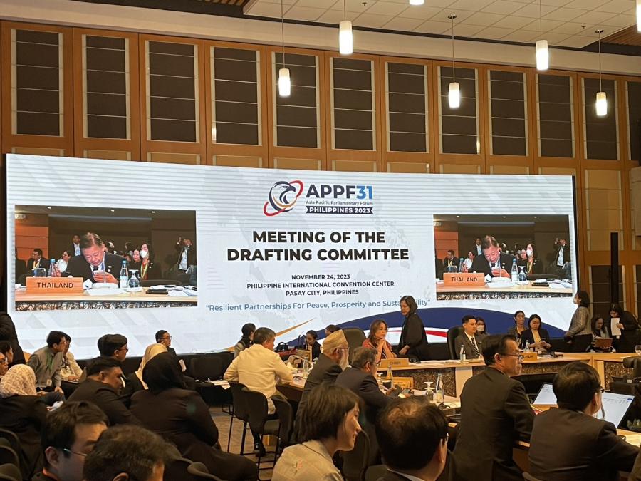 เมื่อวันศุกร์ที่ 24 พฤศจิกายน 2566 เวลา 09.00-17.30 นาฬิกา ณ ศูนย์ประชุมนานาชาติฟิลิปปินส์ นายวีระศักดิ์ ฟูตระกูล สมาชิกวุฒิสภา ในฐานะผู้แทนรัฐสภาไทย เข้าร่วมการประชุมคณะกรรมาธิการยกร่างข้อมติและแถลงการณ์ร่วม โดยที่ประชุมได้พิจารณาประเด็นที่ได้รับมอบหมายจากการประชุมคณะกรรมการบริหารในการพิจารณาข้อเสนอของรัฐสภาฟิลิปปินส์ในการปรับแก้ไขข้อบังคับการประชุม APPF เพื่อบรรจุการประชุมยุวสมาชิกรัฐสภาเป็นส่วนหนึ่งของการประชุมประจำปี ซึ่งผู้แทนรัฐสภาไทยได้สนับสนุนข้อเสนอดังกล่าว พร้อมทั้งเสนอชื่อการประชุมคณะทำงานด้านยุวสมาชิกรัฐสภา นอกจากนี้ ที่ประชุมคณะกรรมาธิการยกร่างฯ ได้พิจารณาร่างข้อมติต่าง ๆ ที่เป็นผลมาจากการประชุมคณะทำงาน และปรับแก้ไขให้ร่างข้อมติเหล่านี้มีความสมบูรณ์และเป็นที่ยอมรับของประเทศสมาชิก APPF โดยที่ประชุมคณะกรรมาธิการยกร่างฯ ได้ให้ความเห็นชอบร่างข้อมติด้านการเมืองและความมั่นคง จำนวน 3 เรื่อง ได้แก่ ร่างข้อมติเรื่องการต่อต้านอาชญากรรมข้ามชาติ ร่างข้อมติเรื่องการเสริมสร้างประสิทธิภาพของรัฐสภาเพื่อส่งเสริมสันติภาพและเสถียรภาพของภูมิภาค และร่างข้อมติเรื่องคาบสมุทรเกาหลี สำหรับร่างข้อมติจากคณะทำงานด้านอื่น ๆ ได้แก่ ด้านเศรษฐกิจและการค้า ด้านความร่วมมือในภูมิภาค และด้านสมาชิกรัฐสภาสตรี จะนำไปพิจารณาในวันต่อไป
