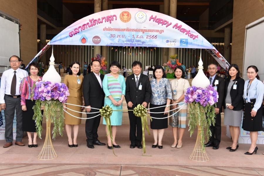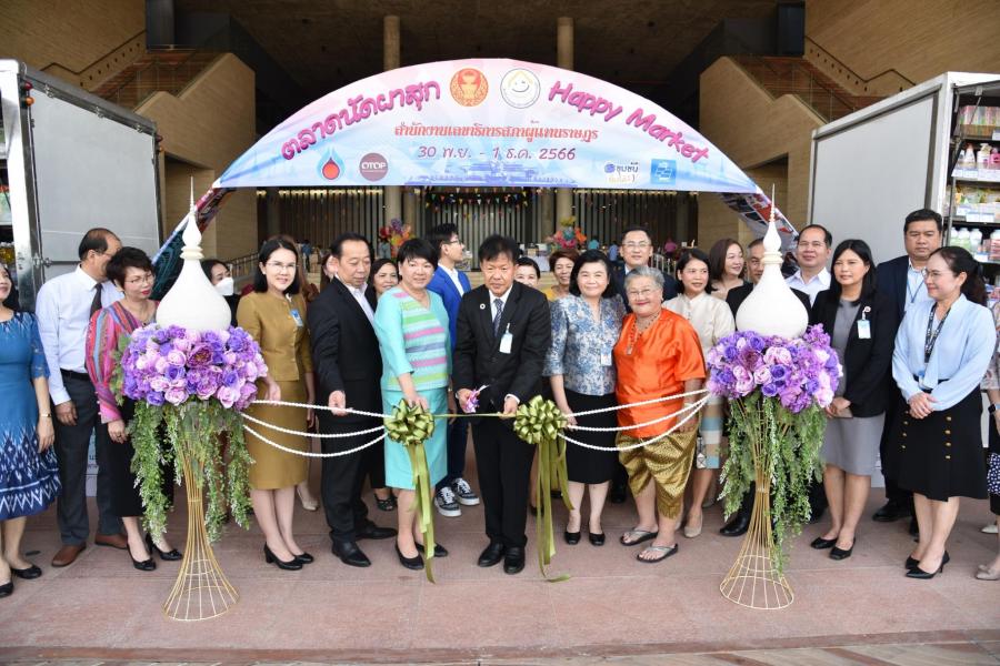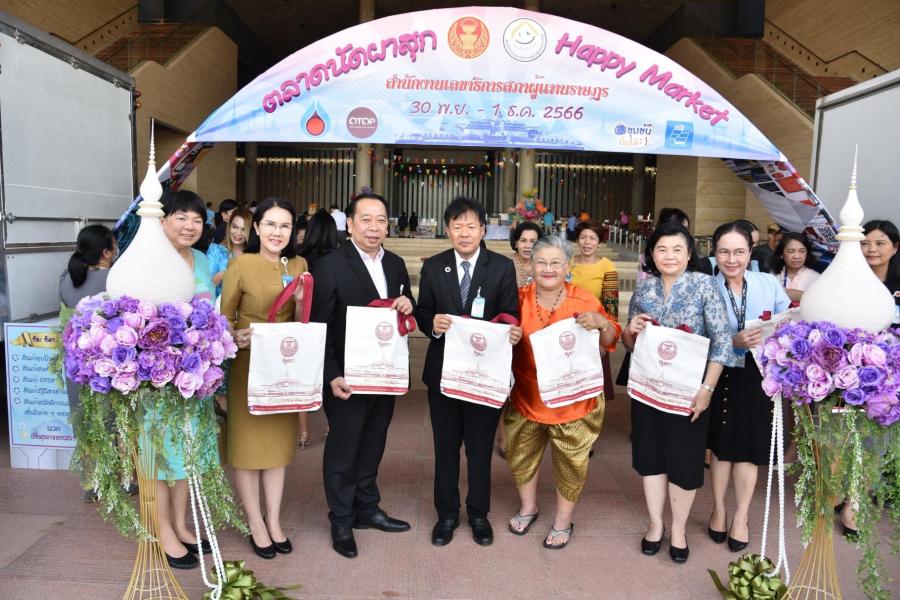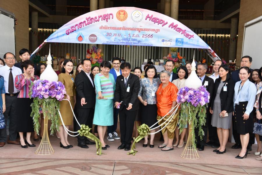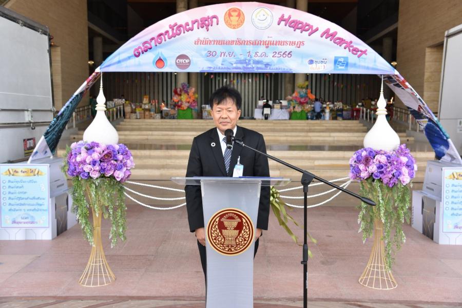 | วันพฤหัสบดีที่ 30 พฤศจิกายน 2566 เวลา 10.30 นาฬิกา ณ บริเวณลานปลาอานนท์ ชั้น 1 อาคารรัฐสภา ว่าที่ ร.ต.ต.อาพัทธ์ สุขะนันท์ รองเลขาธิการสภาผู้แทนราษฎร รักษาราชการแทนเลขาธิการสภาผู้แทนราษฎร เป็นประธานในพิธีเปิดงานตลาดนัดผาสุก (Happy Market) กล่าวรายงานโดย น.ส.สตีจิตร ไตรพิบูลย์สุข รองเลขาธิการสภาผู้แทนราษฎร ในฐานะประธานคณะกรรมการเสริมสร้างความผาสุกและความผูกพันของสำนักงานเลขาธิการสภาผู้แทนราษฎร โดยมี คณะผู้บริหาร และบุคลากรของสำนักงานฯ พร้อมด้วยผู้จำหน่ายสินค้า ร่วมพิธี ทั้งนี้ ภายหลังเสร็จสิ้นพิธีเปิด ว่าที่ ร.ต.ต.อาพัทธ์ สุขะนันท์ และคณะผู้บริหารได้เยี่ยมชมตลาดนัดผาสุก (Happy Market)