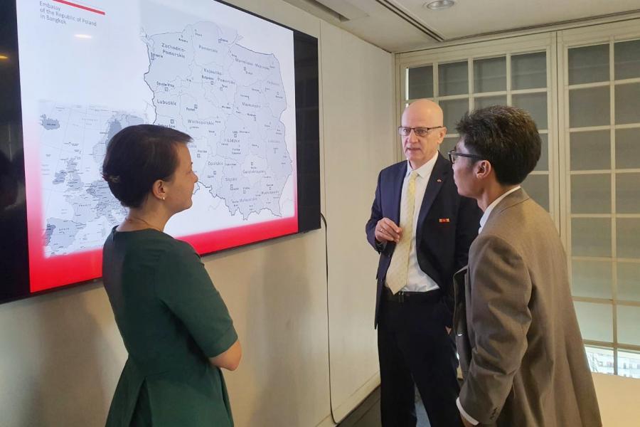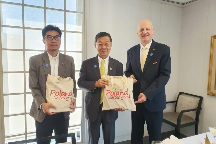 โดยทั้งสองฝ่ายได้แลกเปลี่ยนประเด็นสำคัญ ได้แก่ ข้อมูลทางภูมิศาสตร์ ข้อมูลเศรษฐกิจ การค้า การลงทุน การท่องเที่ยว รวมถึงความใกล้ชิดทางวัฒนธรรมระหว่างสองประเทศ ในโอกาสนี้ทั้งสองฝ่ายเห็นควรให้มีการส่งเสริมความสัมพันธ์ด้วยการแลกเปลี่ยนการเดินทางเยือนระหว่างกลุ่มมิตรภาพของรัฐสภาไทยและโปแลนด์ โดยเอกอัครราชทูตฯ ยินดีประสานการเดินทางเยือนในโอกาสที่เหมาะสมให้แก่ฝ่ายไทยต่อไป