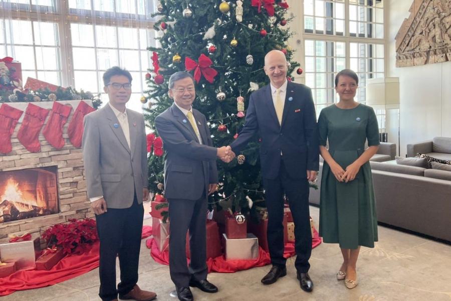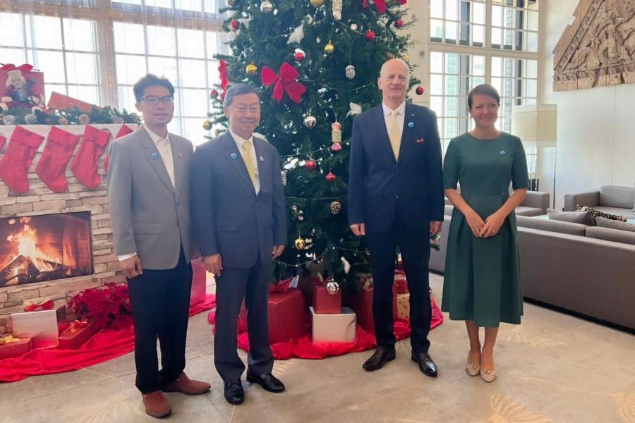 วันจันทร์ที่ 18 ธันวาคม 2566 เวลา 09.00 น. ณ The Bangkok Club เขตสาทร กรุงเทพฯ นายสุรชัย เลี้ยงบุญเลิศชัย สมาชิกวุฒิสภา และประธานกลุ่มมิตรภาพสมาชิกรัฐสภาไทย-โปแลนด์ พร้อมด้วย นายพูนศักดิ์ จันทร์จำปี สมาชิกสภาผู้แทนราษฎร และสมาชิกกลุ่มมิตรภาพฯ ไทย-โปแลนด์ เข้าร่วม Breakfast Meeting โดยมี นายอาร์ตูร์ ดมอฮอฟสกี (H.E. Mr. Artur Dmochowski) เอกอัครราชทูตสาธารณรัฐโปแลนด์ประจำประเทศไทย เป็นเจ้าภาพ และ Dr. Monika Dmochowski รองหัวหน้าคณะผู้แทนทางทูตและหัวหน้าแผนกเศรษฐศาสตร์การเมือง ร่วมให้การต้อนรับ