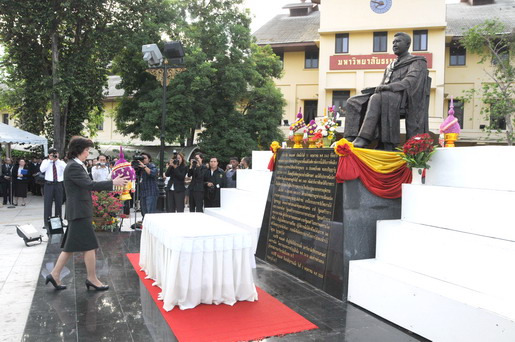 | วันจันทร์ที่ ๑๑ พฤษภาคม ๒๕๕๒ เวลา ๐๗.๓๐ นาฬิกา ณ มหาวิทยาลัยธรรมศาสตร์ท่าพระจันทร์ นางอุมาสีว์ สอาดเอี่ยม รองเลขาธิการสภาผู้แทนราษฎร วางพานประดับพุ่มดอกไม้สักการะอนุสาวรีย์ศาสตราจารย์ ดร. ปรีดี พนมยงค์ ผู้ก่อตั้งมหาวิทยาลัยธรรมศาสตร์ และร่วมงานวันปรีดีประจำปี ๒๕๕๒ |