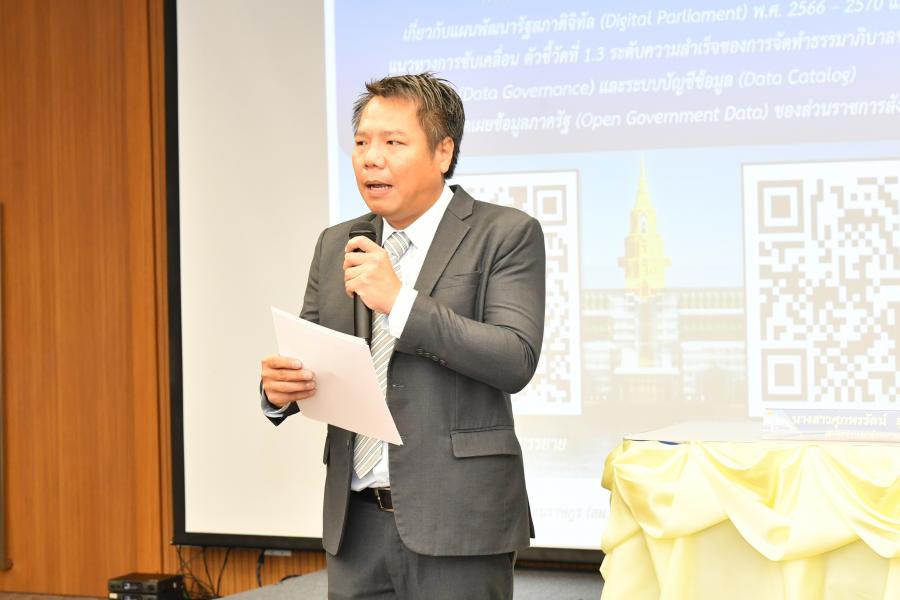 วันจันทร์ที่ 18 มีนาคม 2567 เวลา 08.45 นาฬิกา ณ ห้องประชุม 607 ชั้น 6 อาคารรัฐสภา น.ส.ศุภพรรัตน์ สุขพุ่ม รองเลขาธิการสภาผู้แทนราษฎร เป็นประธานในพิธีเปิดกิจกรรมฝึกอบรมการสร้างความรู้ความเข้าใจเกี่ยวกับแผนพัฒนารัฐสภาดิจิทัล (Digital Parliament) พ.ศ. 2566 2570 และแนวทางการขับเคลื่อนตัวชี้วัดที่ 1.3 ระดับความสำเร็จของการจัดทำธรรมาภิบาลข้อมูล (Data governance) และระบบบัญชีข้อมูล (Data Catalog) เพื่อนำไปสู่การเปิดเผยข้อมูลภาครัฐ (Open Government Data) ของส่วนราชการสังกัดรัฐสภา โดยมี นายเกรียงไกรหวังวานิชกิจ ที่ปรึกษาโครงการประเมินผลการปฏิบัติราชการ สำนักงานเลขาธิการสภาผู้แทนราษฎร กล่าวรายงานถึงวัตถุประสงค์และภาพรวมของการอบรม ทั้งนี้ ผู้บริหาร บุคลากรสำนักงานเลขาธิการสภาผู้แทนราษฎร ร่วมพิธี