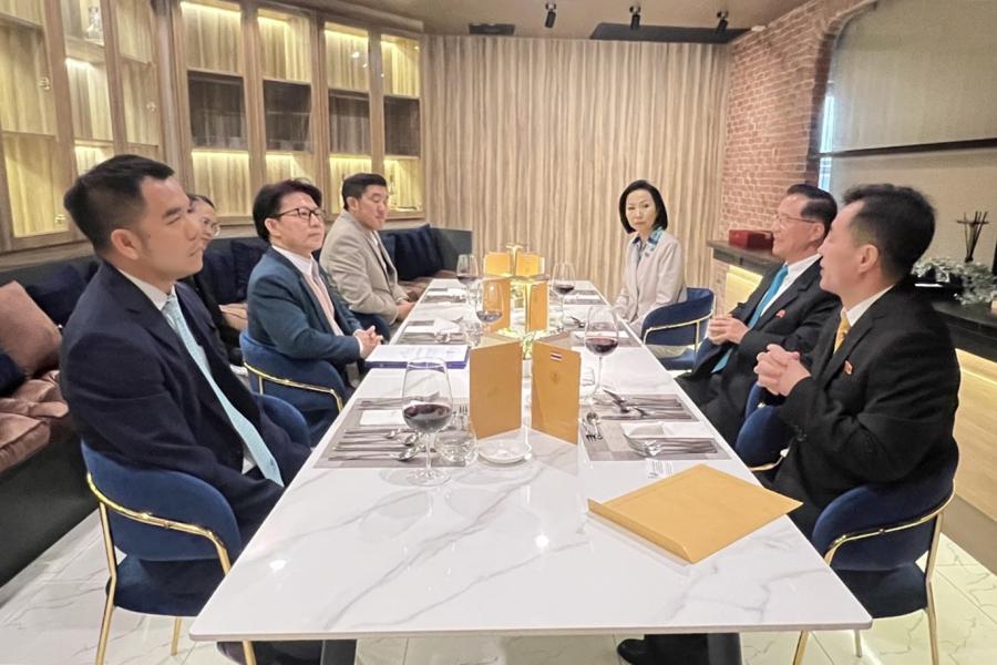 เมื่อวันอังคารที่ 19 มีนาคม 2567 ณ ร้านอาหารโอลาน เชฟฮับ กรุงเทพฯ นายประสิทธิ์ ปัทมผดุงศักดิ์ สมาชิกสภาผู้แทนราษฎร ในฐานะประธานกลุ่มมิตรภาพสมาชิกรัฐสภาไทย-เกาหลีเหนือ พร้อมด้วย นายปริญญา ฤกษ์หร่าย น.ส.ศรีญาดา ปาลิมาพันธ์ สมาชิกสภาผู้แทนราษฎร และกรรมการบริหารกลุ่มมิตรภาพฯ ไทย-เกาหลีเหนือ และนายปรีติ เจริญศิลป์ สมาชิกสภาผู้แทนราษฎร กรรมการบริหารและเลขานุการกลุ่มมิตรภาพฯ ไทย-เกาหลีเหนือ เป็นเจ้าภาพงานเลี้ยงอาหารค่ำ เพื่อเป็นเกียรติแก่ นายคิม เช พง (H.E. Mr. Kim Je Bong) เอกอัครราชทูตสาธารณรัฐประชาธิปไตยประชาชนเกาหลีประจำประเทศไทย และคณะ เพื่อแนะนำกรรมการบริหารกลุ่มมิตรภาพฯ ไทย-เกาหลีเหนือ ชุดใหม่ ซึ่งเพิ่งได้รับเลือกตั้ง เมื่อวันที่ 14 ก.พ. 67 โดยทั้งสองฝ่ายได้ร่วมหารือแลกเปลี่ยนข้อคิดเห็นเกี่ยวกับการฟื้นฟูและส่งเสริมความร่วมมือระหว่างรัฐสภาของทั้งสองประเทศให้แน่นแฟ้นยิ่งขึ้น