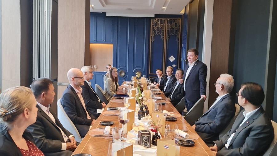 พล.อ.องอาจ พงษ์ศักดิ์ อดีตกรรมการบริหารกลุ่มมิตรภาพฯ ไทย-ฟินแลนด์ และนายนพพร อัจฉริยวนิช อดีตเอกอัครราชทูต ณ กรุงเฮลซิงกิ เข้าร่วมงานเลี้ยงดังกล่าว โดยทั้งสองฝ่ายได้หารือในประเด็นความร่วมมือทางการค้าและกลุ่มมิตรภาพของทั้งสองประเทศ โดยรัฐมนตรีฯ เห็นถึงความสำคัญของความร่วมมือของทั้งสองประเทศผ่านช่องทางของกลุ่มมิตรภาพฯ เนื่องจากในช่วงที่ดำรงตำแหน่งประธานกลุ่มมิตรภาพฯ ได้สร้างความแน่นแฟ้นโดยการแลกเปลี่ยนข้อมูลข่าวสาร และแลกเปลี่ยนการเยือนระหว่างสองฝ่าย อันนำมาซึ่งความสัมพันธ์ที่ใกล้ชิดกันยิ่งขึ้นจนกระทั่งทุกวันนี้ และได้กล่าวเชิญพร้อมรอให้การต้อนรับคณะผู้แทนกลุ่มมิตรภาพฯ ไทย-ฟินแลนด์ ณ สาธารณฟินแลนด์