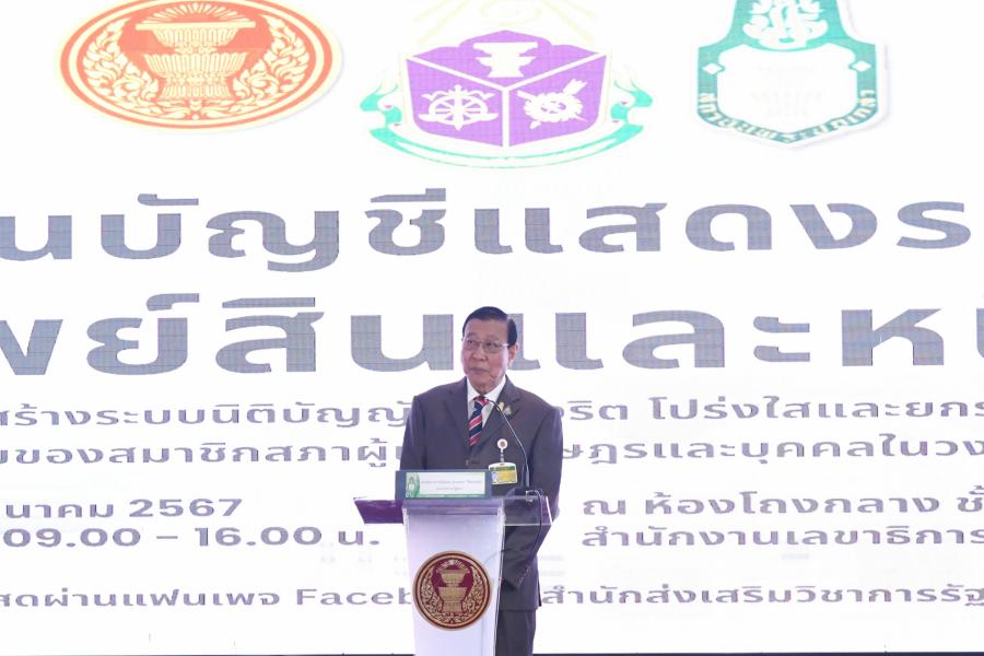 วันศุกร์ที่ 29 มีนาคม 2567 เวลา 09.00 นาฬิกา ณ ห้องโถงกลาง ชั้น B1 อาคารรัฐสภา ศ.พิเศษพรเพชร วิชิตชลชัย ประธานวุฒิสภา ในฐานะรองประธานรัฐสภา เป็นประธานในพิธีเปิดกิจกรรมเสริมสร้างความรู้ความเข้าใจเกี่ยวกับการยื่นบัญชีแสดงรายการทรัพย์สินและหนี้สินภายใต้โครงการ "สร้างระบบนิติบัญญัติให้สุจริต โปร่งใส และยกระดับการตรวจสอบจริยธรรมของสมาชิกรัฐสภาและบุคคลในวงงานรัฐสภาด้วยพลังพลเมือง" โดยมี รศ.ดร.อิสระ เสรีวัฒนวุฒิ รองเลขาธิการสถาบันพระปกเกล้า กล่าวรายงาน โอกาสนี้ นายศุภชัย สมเจริญ รองประธานวุฒิสภา คนที่สอง สมาชิกรัฐสภา ผู้เชี่ยวชาญ ผู้ชำนาญการ และผู้ช่วยดำเนินงานประจำตัวสมาชิกรัฐสภา ข้าราชการรัฐสภาฝ่ายการเมือง ผู้ปฏิบัติงานให้แก่คณะ กมธ. คณะกรรมการป้องกันและปราบปรามการทุจริตแห่งชาติ และคณะผู้บริหารสำนักงานเลขาธิการสภาผู้แทนราษฎร เข้าร่วมงาน