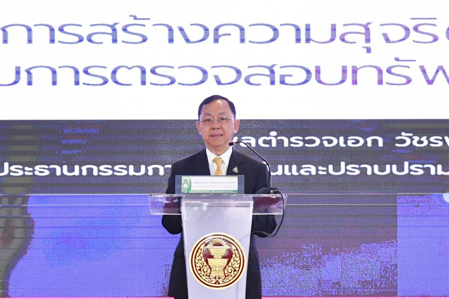 จากนั้น พล.ต.อ.วัชรพล ประสารราชกิจ ประธานกรรมการป้องกันและปราบปรามการทุจริตแห่งชาติ ปาฐกถาพิเศษ เรื่อง "การยื่นบัญชีทรัพย์สินและหนี้สิน : กลไกในการสร้างความสุจริตโปร่งใส และยกระดับการตรวจสอบบัญชีทรัพย์สินและหนี้สิน"