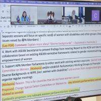 ที่ประชุมได้พิจารณาปรับแก้ไขกรอบการดำเนินงานภายใต้ 3 เสาหลักของแผนปฏิบัติการดังกล่าว ได้แก่ เสาหลักที่ 1: การสร้างสภาพแวดล้อมและพื้นที่ที่ปลอดภัย (การสร้างสภาพแวดล้อมที่สนับสนุนให้สตรีมีส่วนร่วมและเป็นผู้นำในระบบการเมืองของตน)