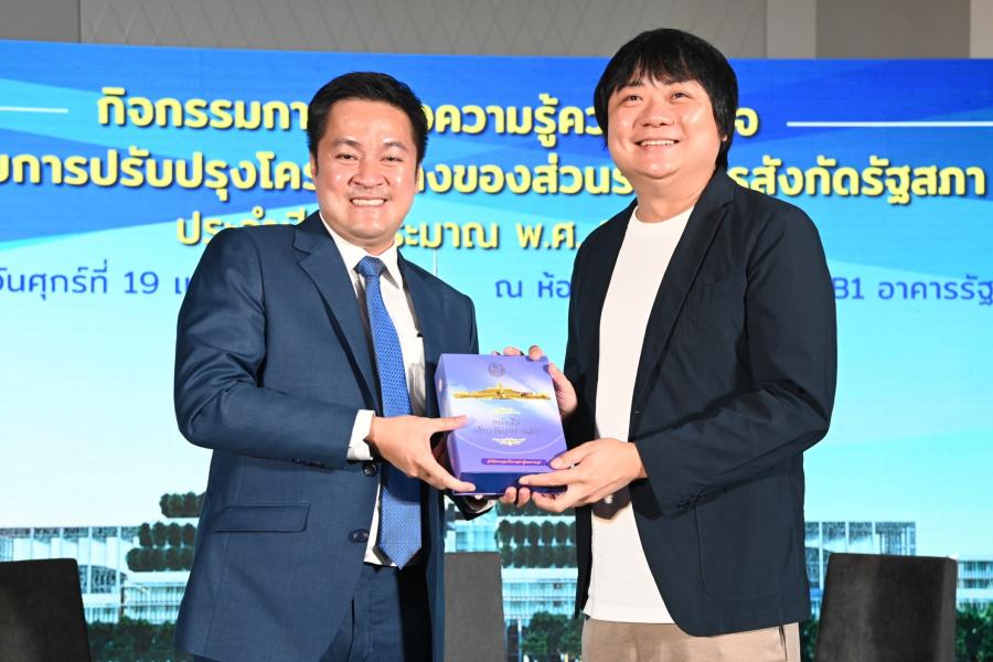วันศุกร์ที่ 19 เมษายน 2567 เวลา 09.30 นาฬิกา ณ ห้องประชุมสัมมนา ชั้น B1 อาคารรัฐสภา นายวันมูหะมัดนอร์ มะทา ประธานรัฐสภา เป็นประธานในพิธีเปิดกิจกรรมการสร้างความรู้ความเข้าใจเกี่ยวกับการปรับปรุงโครงสร้างของส่วนราชการสังกัดรัฐสภาประจำปีงบประมาณ พ.ศ. 2567 พร้อมกล่าวปาฐกถาพิเศษ หัวข้อ “สถาบันนิติบัญญัติเพื่อประชาชน” และนายปดิพัทธ์ สันติภาดา รองประธานสภาผู้แทนราษฎร คนที่หนึ่ง ในฐานะประธานคณะกรรมการพิจารณาปรับปรุงโครงสร้างส่วนราชการสังกัดรัฐสภา กล่าวรายงานถึงที่มาวัตถุประสงค์ของการปรับปรุงโครงสร้างของส่วนราชการสังกัดรัฐสภา โดยมี เลขาธิการสภาผู้แทนราษฎร เลขาธิการวุฒิสภา คณะกรรมการฯ คณะอนุกรรมการฯ วิทยากรผู้ทรงคุณวุฒิ คณะทำงานทางการเมืองของประธานสภาผู้แทนราษฎร ผู้บริหารและข้าราชการของสำนักงานเลขาธิการสภาผู้แทนราษฎรและสำนักงานเลขาธิการวุฒิสภา ร่วมกิจกรรม