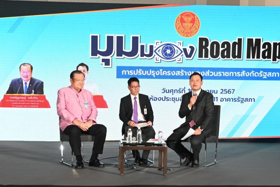 และในเวลา 11.00 นาฬิกา ว่าที่ ร.ต.ต.อาพัทธ์ สุขะนันท์ เลขาธิการสภาผู้แทนราษฎร และนางสาวนภาภรณ์ ใจสัจจะ เลขาธิการวุฒิสภา พูดคุยกับผู้เข้าร่วมกิจกรรมในหัวข้อ“การขับเคลื่อนองค์กรในบริบทที่ท้าทาย” จากนั้น ดร.เอกพันธุ์ ปิณฑวณิช ประธานคณะอนุกรรมการรับฟังความคิดเห็นของผู้มีส่วนได้เสีย และผู้ที่เกี่ยวข้องกับการปรับปรุงโครงสร้างของส่วนราชการสังกัดรัฐสภา นายณัฏฐกฤษฎ์ วงศ์เจริญ ประธานคณะอนุกรรมการศึกษาทบทวนหน้าที่ความรับผิดชอบและอัตรากำลังของส่วนราชการสังกัดรัฐสภาในการสนับสนุนภารกิจของฝ่ายนิติบัญญัติ นำเสนอ “มุมมอง Road Map การปรับปรุงโครงสร้างของส่วนราชการสังกัดรัฐสภา” ดำเนินรายการโดย นายนิวัฒน์  งามวิลัย นิติกรชำนาญการพิเศษ สำนักงานเลขานุการ ก.ร.