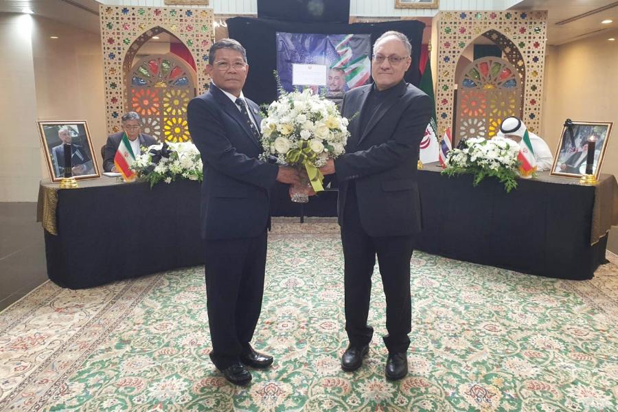 สมาชิกวุฒิสภาและประธานกลุ่มมิตรภาพสมาชิกรัฐสภาไทย-อิหร่าน ร่วมลงนามและมอบแจกันดอกไม้แสดงความเสียใจแก่ H.E. Mr. Nassereddin HEIDARI เอกอัครราชทูตสาธารณรัฐอิสลามอิหร่านประจำประเทศไทย