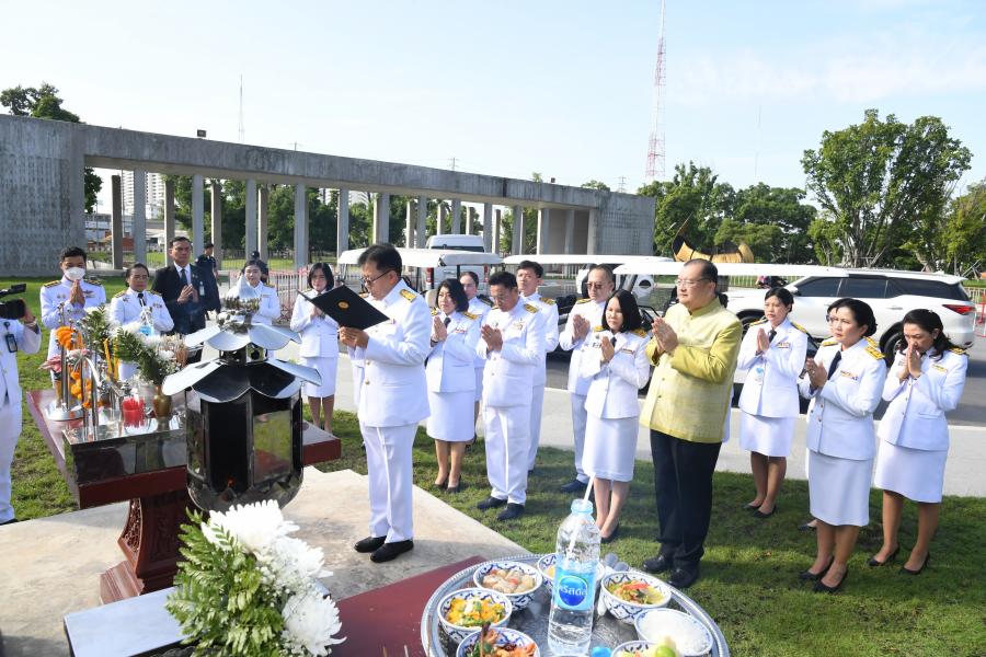 เลขาธิการสภาผู้แทนราษฎร ถวายพวงมาลัย ถวายสำรับอาหาร และจุดธูปเทียนสักการะ พระสยามเทวาธิราช พระเสื้อเมือง พระทรงเมือง และพระภูมิชัยมงคล พร้อมกล่าวคำบูชา พระสยามเทวาธิราชฯ เนื่องในวันที่ระลึกพระบาทสมเด็จพระปกเกล้าเจ้าอยู่หัว