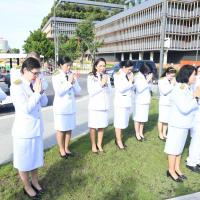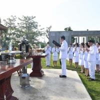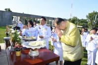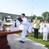 พร้อมกล่าวคำบูชาศาลตา - ยาย โดยมี ผู้บริหารสำนักงานเลขาธิการสภาผู้แทนราษฎร ร่วมพิธี