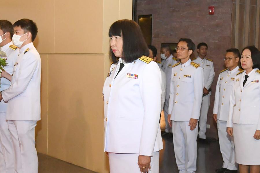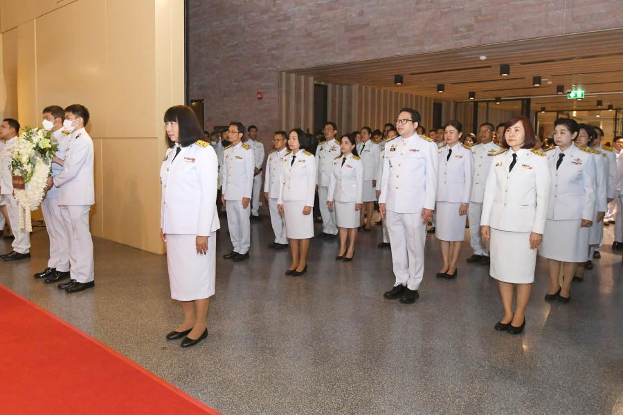 เลขาธิการวุฒิสภา พร้อมด้วยผู้บริหาร และข้าราชการสำนักงานเลขาธิการวุฒิสภา วางพวงมาลา ถวายราชสักการะพระบาทสมเด็จพระปกเกล้าเจ้าอยู่หัว ในนาม “สำนักงาน เลขาธิการวุฒิสภา”