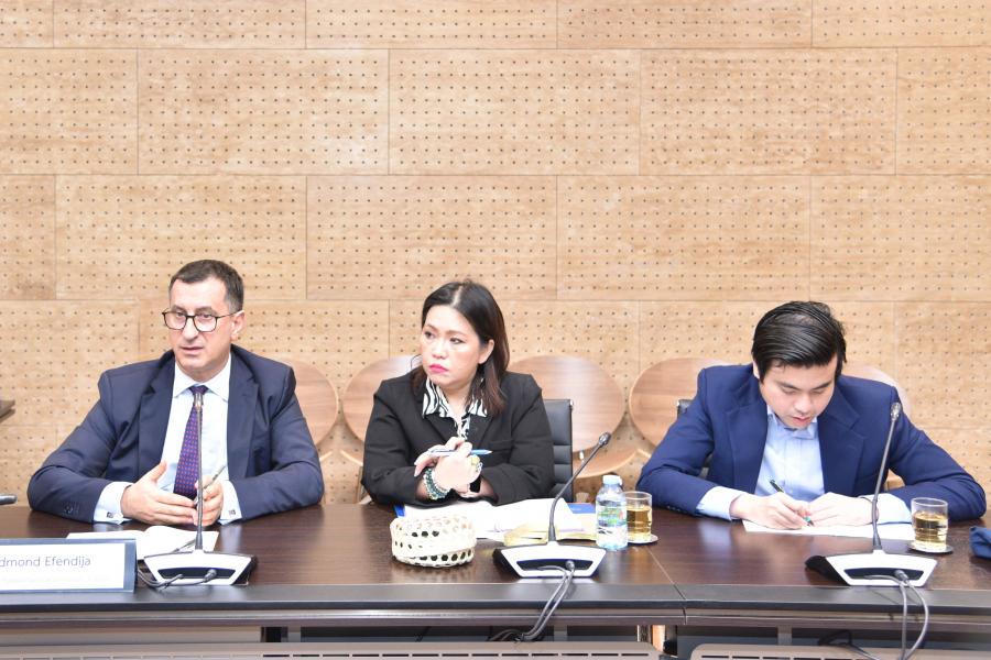 น.ส.สตีจิตร ไตรพิบูลย์สุข รองเลขาธิการสภาผู้แทนราษฎร ให้การรับรอง Mr.Edmond Efendija ผู้อำนวยการสถาบันส่งเสริมประชาธิปไตยเพื่อการต่างประเทศ (NDI) ประจำประเทศไทย และคณะ โดยมี ผู้อำนวยการสำนักสารสนเทศ ร่วมให้การรับรอง