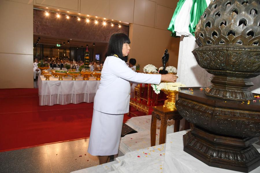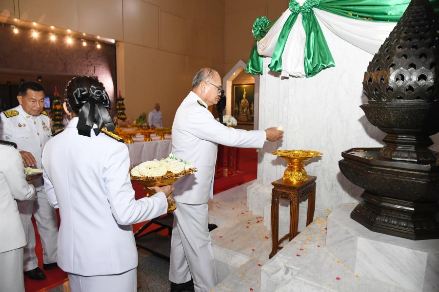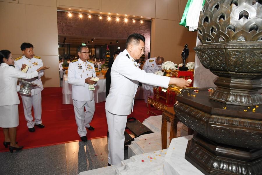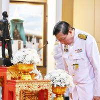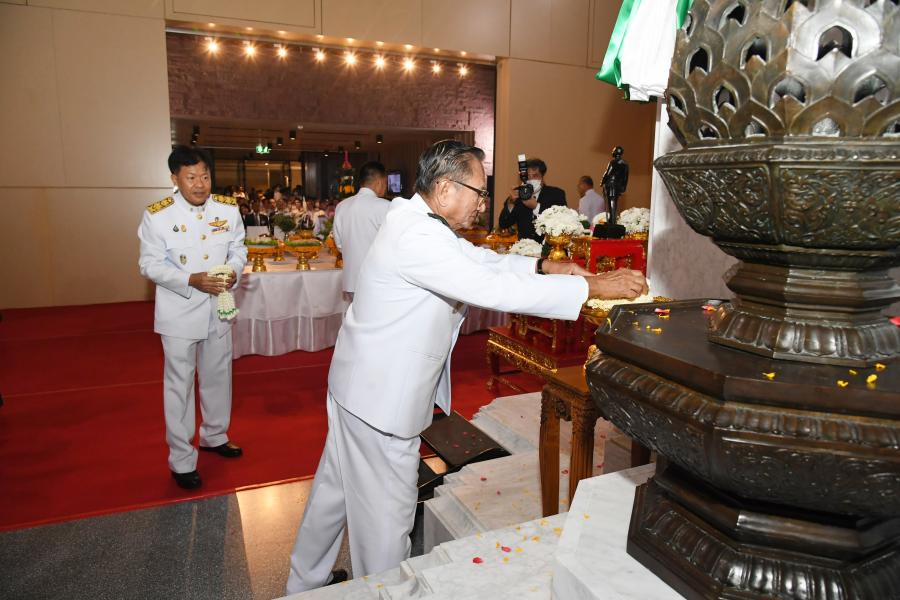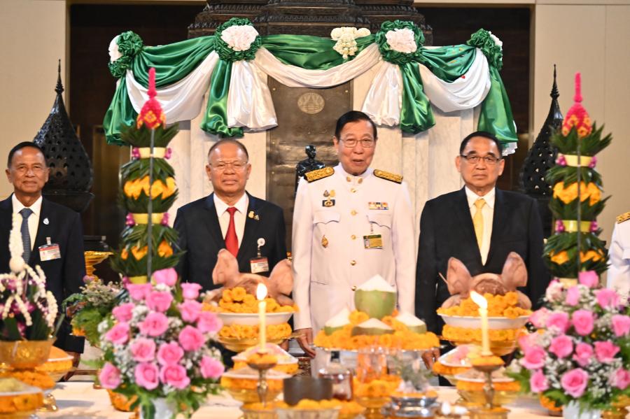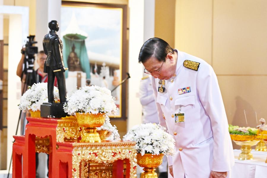 จากนั้น ศ.พิเศษพรเพชร วิชิตชลชัย และแขกผู้มีเกียรติถวายพวงมาลัยพระบรมราชานุสาวรีย์พระบาทสมเด็จพระปกเกล้าเจ้าอยู่หัว