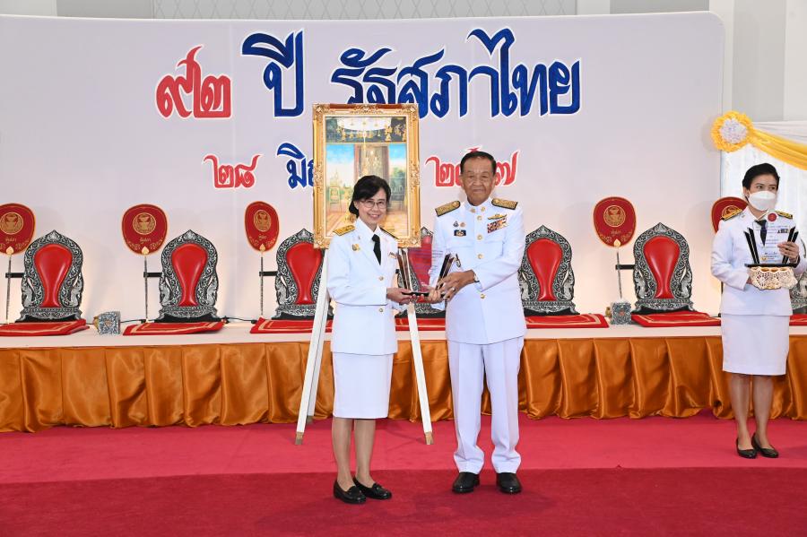 วันศุกร์ที่ 28 มิถุนายน 2567 เวลา 13.00 นาฬิกา ณ ห้องจัดประชุมสัมมนา (โถงกลาง) ชั้น B1 อาคารรัฐสภา นายวันมูหะมัดนอร์ มะทา ประธานรัฐสภา เป็นประธานในพิธีมอบโล่รางวัลให้ส่วนราชการสังกัดรัฐสภา หน่วยงานที่มีผลการปฏิบัติราชการดีเด่นตามตัวชี้วัดและหน่วยงานที่ส่งเสริม สนับสนุน การปฏิบัติราชการดีเด่นของส่วนราชการสังกัดรัฐสภา ประจำปีงบประมาณ พ.ศ. 2566 โดยมี น.ส.ศุภพรรัตน์ สุขพุ่ม รองเลขาธิการสภาผู้แทนราษฎร ในฐานะประธานกรรมการพิจารณากำหนดกรอบตัวชี้วัด น้ำหนัก เป้าหมาย เกณฑ์การให้คะแนนตัวชี้วัดของส่วนราชการสังกัดรัฐสภา ประจำปีงบประมาณ พ.ศ. 2566 กล่าวรายงาน
