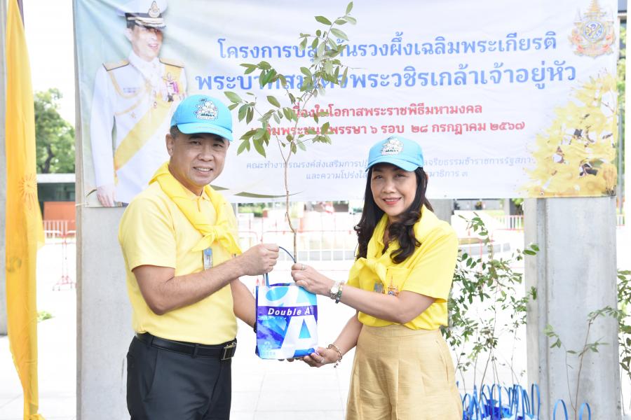 จากนั้น รองเลขาธิการสภาผู้แทนราษฎร มอบต้นรวงผึ้งให้แก่ผู้อำนวยการสำนักกรรมาธิการ 3 ข้าราชการ และพนักงานราชการ เพื่อนำไปปลูกที่บ้านและบำรุงรักษาถวายเป็นพระราชกุศลแด่พระบาทสมเด็จพระเจ้าอยู่หัว สำหรับโครงการปลูกต้นรวงผึ้งเฉลิมพระเกียรติฯ เป็นโครงการที่มีความสำคัญให้ข้าราชการและพนักงานราชการได้แสดงออกถึงความจงรักภักดีและเทิดทูนสถาบันพระมหากษัตริย์ และเป็นการรณรงค์ส่งเสริมการปฏิบัติตามประมวลจริยธรรมของข้าราชการรัฐสภาของสำนักกรรมาธิการ 3 ทั้งเป็นการขับเคลื่อนสำนักงานสีเขียว (Green Office) ของสำนักงานเลขาธิการสภาผู้แทนราษฎรอีกด้วย ทั้งนี้ ต้นรวงผึ้งถือเป็นไม้มงคลประจำพระองค์ในหลวงรัชกาลที่ 10 ด้วยดอกรวงผึ้งมีสีเหลือง ซึ่งเป็นสีประจำวันพระราชสมภพ และจะผลิดอกช่วงเดือนกรกฎาคม ซึ่งตรงกับเดือนพระราชสมภพพอดีที่ผ่านมาเมื่อพระองค์เสด็จพระราชดำเนินประกอบพระราชกรณียกิจตามสถานที่ต่าง ๆ ก็จะทรงปลูกต้นรวงผึ้งพระราชทานไว้เพื่อเป็นตัวแทนแห่งพระองค์และเป็นสิริมงคล