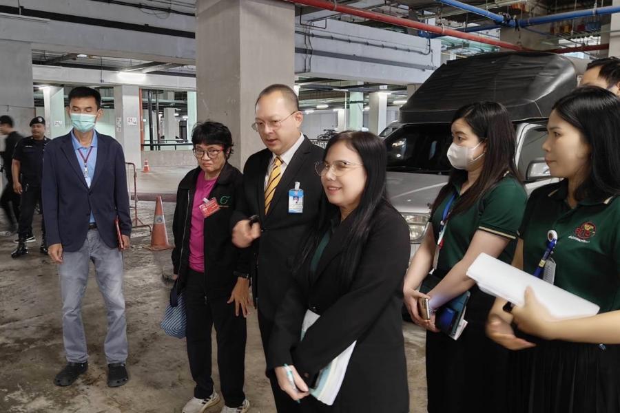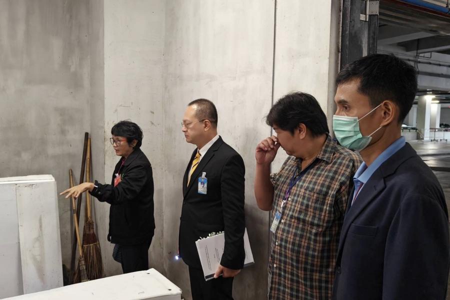 จากนั้น คณะกรรมการผู้ตรวจประเมิน ตรวจประเมินพื้นที่ปฏิบัติงานตามเกณฑ์สำนักงานสีเขียวหมวด 1 - 6 พร้อมทั้ง สัมภาษณ์บุคลากร และผู้รับผิดชอบในพื้นที่ปฏิบัติงานที่เกี่ยวข้องและลงพื้นที่ตรวจสอบพื้นที่พักขยะและบ่อบำบัดน้ำเสีย ของอาคารรัฐสภา |