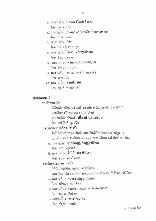 บัดนี้ คณะกรรมการฯ ได้ตัดสินผลงานเรื่องสั้นและบทกวีเสร็จสิ้นเรียบร้อยแล้วผลการตัดสิน มีดังนี้