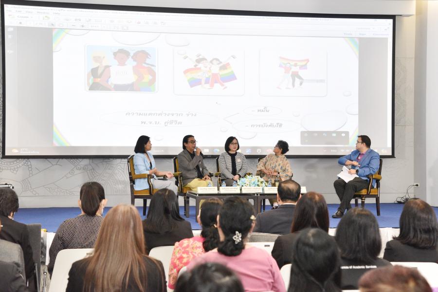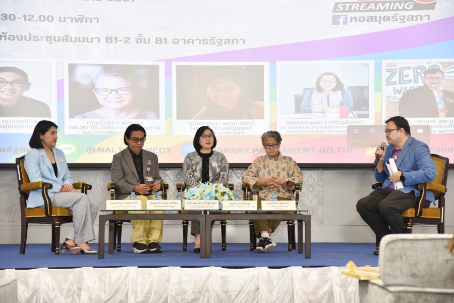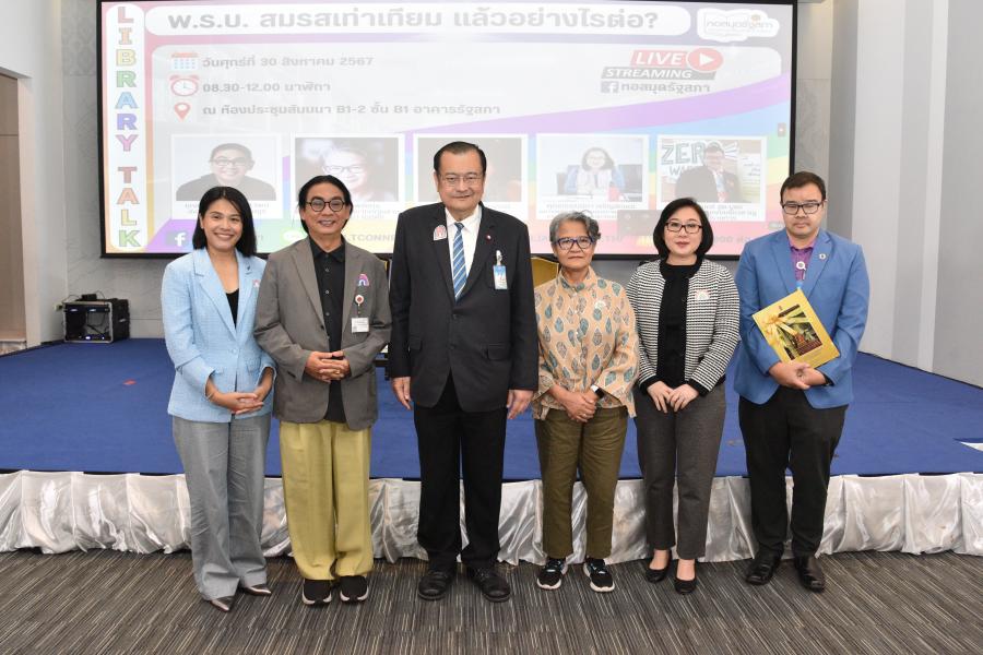 | วันศุกร์ที่ 30 สิงหาคม 2567 เวลา 09.00 นาฬิกา ณ ห้องประชุมสัมมนา B1-2 ชั้น B1 (โซนกลาง) อาคารรัฐสภา นายณัฏฐกฤษฎ์ วงศ์เจริญ รองเลขาธิการสภาผู้แทนราษฎร เป็นประธานในพิธีเปิดโครงการเสวนา Library Talk เรื่อง พ.ร.บ. สมรสเท่าเทียม แล้วอย่างไรต่อ? โดยมี นายมาณิช อินทฉิม ผู้อำนวยการสำนักวิชาการ กล่าวรายงาน ทั้งนี้ สส. ผู้บริหาร และบุคลากรสำนักงานเลขาธิการสภาผู้แทนราษฎร เข้าร่วมการเสวนา จากนั้น เป็นการเสวนา เรื่อง พ.ร.บ. สมรสเท่าเทียม แล้วอย่างไรต่อ ? โดยได้รับเกียรติร่วมเสวนาจาก นายธัญวัจน์ กมลวงศ์วัฒน์ สส.พรรคประชาชน น.ส.กรรณิกา เจริญลักษณ์ ผู้อำนวยการกองส่งเสริมความเสมอภาคระหว่างเพศ กรมกิจการสตรีและสถาบันครอบครัว นางเรืองรวี พิชัยกุล ผู้อำนวยการสถาบันวิจัยบทบาทหญิงชายและการพัฒนา (GDRI) น.ส.เกศชฎา พรหมจรรย์ ผู้อำนวยการมูลนิธิเวสต์มินเตอร์เพื่อประชาธิปไตย สำนักงานประเทศไทย โดยมี นายหรินทร์ สูตะบุตร นักทรัพยากรบุคคลเชี่ยวชาญ สำนักพัฒนาบุคลากร ดำเนินรายการ โครงการเสวนาดังกล่าว จัดโดย สำนักงานเลขาธิการสภาผู้แทนราษฎร โดยหอสมุดรัฐสภา สำนักวิชาการ มีวัตถุประสงค์เพื่อให้สมาชิกรัฐสภา ข้าราชการ บุคลากรในสังกัดรัฐสภา และประชาชน ได้รับรู้ข้อมูลสารสนเทศที่เกี่ยวข้องกับประเด็น พ.ร.บ.สมรสเท่าเทียม พ.ศ. 2567 รวมทั้งส่งเสริมให้หอสมุดรัฐสภาเกิดภาพลักษณ์ที่ดีเป็นวงกว้าง ตอบสนองวิสัยทัศน์ SMART Parliament ของสำนักงานเลขาธิการสภาผู้แทนราษฎร หอสมุดรัฐสภาสามารถเป็นผู้นำด้านการให้บริการสารสนเทศของสถาบันนิติบัญญัติในระดับประเทศ และสามารถส่งเสริมการอ่านให้เข้าถึงประชาขนทุกกลุ่มเป้าหมาย (Library for All) สำหรับการเสวนาดังกล่าว จะทำการเผยแพร่ Live Stream ผ่านระบบอินทราเน็ต สำนักงานเลขาธิการสภาผู้แทนราษฎร และ Facebook Fan Page "หอสมุดรัฐสภา "