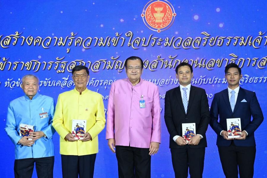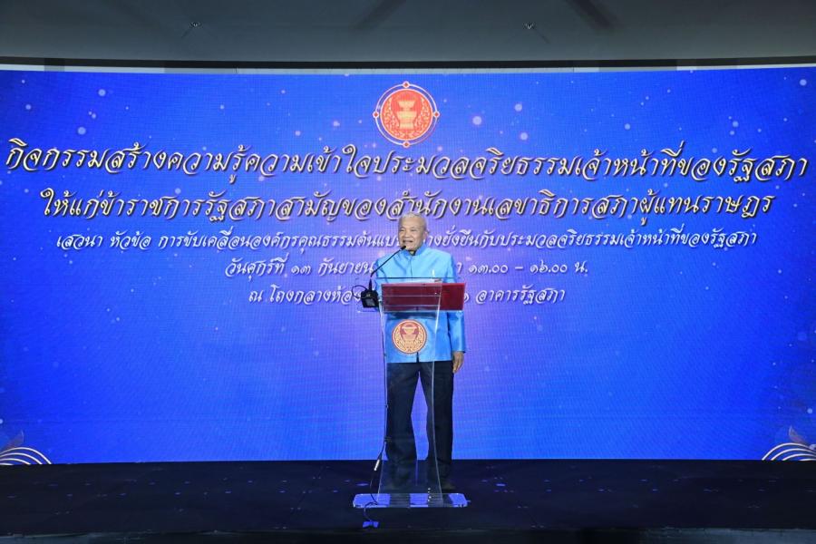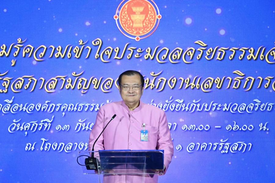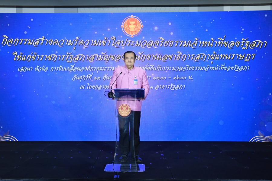 วันศุกร์ที่ 13 กันยายน 2567 เวลา 13.20 นาฬิกา ณ โถงกลางห้องประชุมสัมมนา ชั้น B1 อาคารรัฐสภา นายณัฏฐกฤษฎ์ วงศ์เจริญ รองเลขาธิการสภาผู้แทนราษฎร เป็นประธานในพิธีเปิดกิจกรรมสร้างความรู้ความเข้าใจประมวลจริยธรรมเจ้าหน้าที่ของรัฐสภาให้แก่ข้าราชการรัฐสภาสามัญของสำนักงานเลขาธิการสภาผู้แทนราษฎร โดยมี น.ส.สิตาวีร์ ธีรวิรุฬห์ ผู้อำนวยการสำนักพัฒนาบุคลากร กล่าวรายงานวัตถุประสงค์การจัดกิจกรรม ในการนี้ พล.ร.อ.สุรศักดิ์ ศรีอรุณ ประธานคณะกรรมการจริยธรรมของส่วนราชการสังกัดรัฐสภา พล.อ.อ.วีรวิท คงศักดิ์ ประธานมูลนิธิส่งเสริมการป้องกันและปราบปรามการทุจริต คณะผู้บริหารและบุคลากรสำนักงานเลขาธิการสภาผู้แทนราษฎร ร่วมพิธี