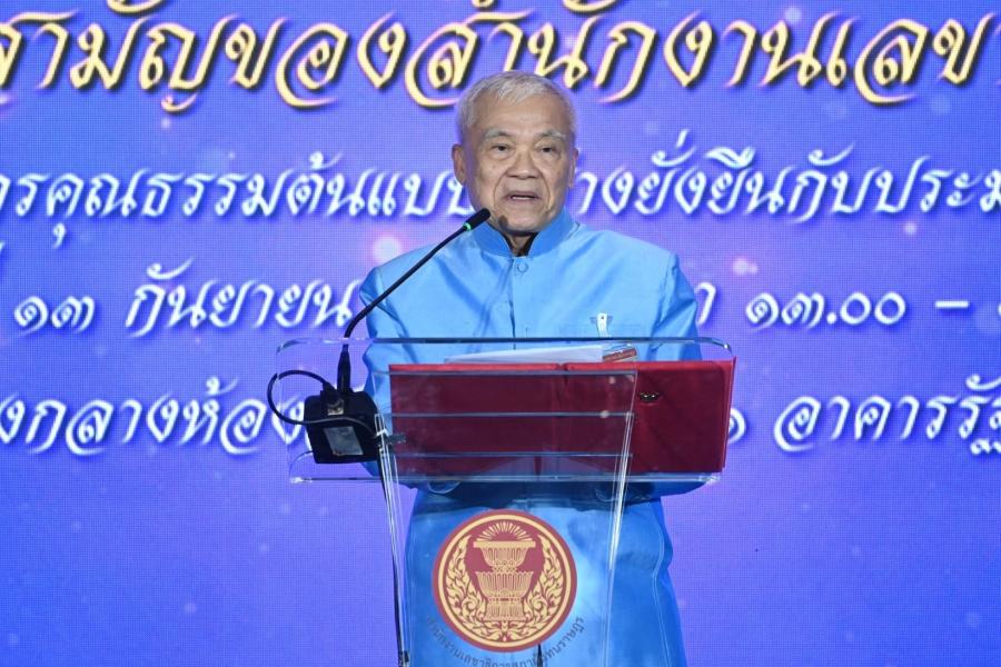 จากนั้น ในเวลา 13.40 น. พล.ร.อ.สุรศักดิ์ ศรีอรุณ ประธานคณะกรรมการจริยธรรมของส่วนราชการสังกัดรัฐสภา ให้เกียรติกล่าวปาฐกถาพิเศษ เรื่อง บทบาทคณะกรรมการจริยธรรมของส่วนราชการสังกัดรัฐสภาตามประมวลจริยธรรมเจ้าหน้าที่ของรัฐสภา