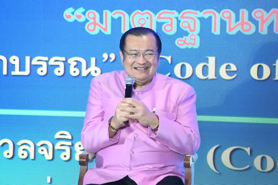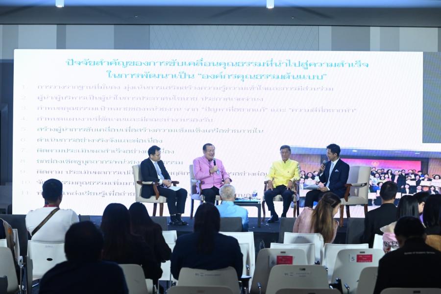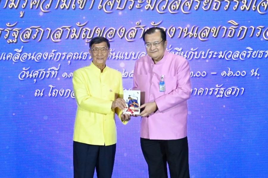 และในเวลา 14.10 น. เป็นการเสวนา เรื่อง การขับเคลื่อนองค์กรคุณธรรมต้นแบบอย่างยั่งยืนกับประมวลจริยธรรมเจ้าหน้าที่ของรัฐสภา โดย พล.อ.อ.วีรวิท คงศักดิ์ ประธานมูลนิธิส่งเสริมการป้องกันและปราบปรามการทุจริต นายณัฏฐกฤษฎ์ วงศ์เจริญ รองเลขาธิการสภาผู้แทนราษฎร นายนิวัติ งามวิลัย นิติกรชำนาญการพิเศษ กลุ่มงานพัฒนากฎ ระเบียบ สำนักงานเลขานุการ ก.ร. ดำเนินรายการ โดย นายณรงค์ฤทธิ์ คิดเห็น พนักงานวิชาการจัดรายการวิทยุ สถานีวิทยุกระจายเสียงและวิทยุโทรทัศน์รัฐสภา สำหรับกิจกรรมดังกล่าว เป็นกิจกรรมที่ 4 กิจกรรมสร้างความรู้ความเข้าใจประมวลจริยธรรมเจ้าหน้าที่ของรัฐสภา เพื่อปลูกฝังและส่งเสริมจริยธรรมให้แก่ข้าราชการ พนักงานราชการ และลูกจ้าง ตามประมวลจริยธรรมเจ้าหน้าที่ของรัฐสภา ส่วนที่ 3 การรักษาจริยธรรม ข้อที่ 13 (1) ได้กำหนดให้หัวหน้าส่วนราชการสังกัดรัฐสภาและคณะกรรมการจริยธรรมของส่วนราชการสังกัดรัฐสภา ส่งเสริมจริยธรรมข้าราชการรัฐสภาสามัญ โดยอย่างน้อยต้องดำเนินการปลูกฝังและส่งเสริมจริยธรรมให้ผู้บริหารและข้าราชการรัฐสภาสามัญทุกระดับชั้น ในโครงการส่งเสริมการปฏิบัติตามมาตรฐานทางคุณธรรม จริยธรรม และธรรมาภิบาล : วันแห่งคุณธรรมและจริยธรรม (Morality & Ethics Day) เพื่อให้เป็นไปตามแผนยุทธศาสตร์การขับเคลื่อนและผลักดันการปฏิบัติตามประมวลจริยธรรมข้าราชการรัฐสภา ฉบับที่ 3 พ.ศ. 2563 2567 และประกาศคณะกรรมการจริยธรรมข้าราชการรัฐสภา เรื่อง หลักเกณฑ์และวิธีการคัดเลือกข้าราชการรัฐสภาผู้มีคุณธรรมและจริยธรรม ดีเด่นและสำนักที่มีผลงานด้านการส่งเสริมตามประมวลจริยธรรมข้าราชการรัฐสภาและความโปร่งใส พ.ศ. 2563