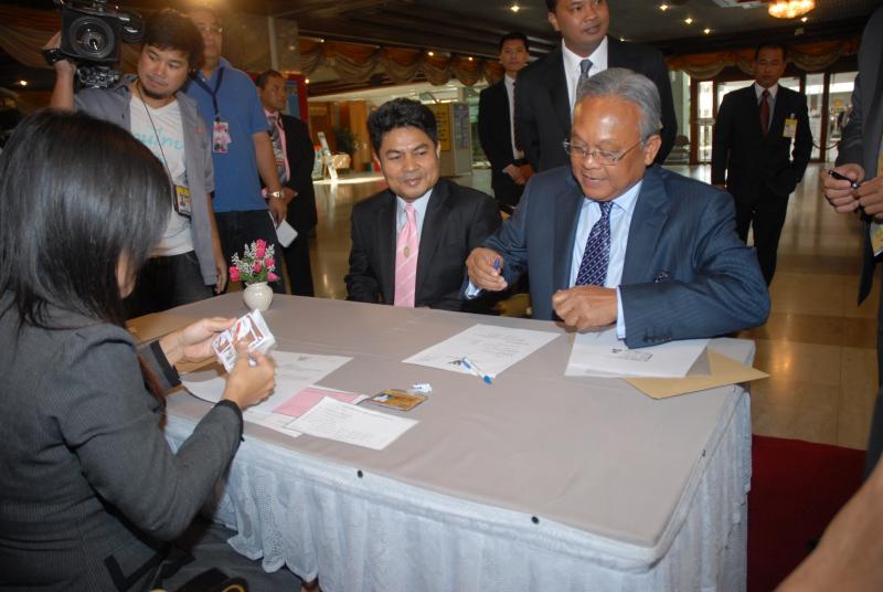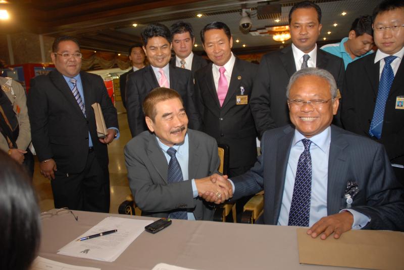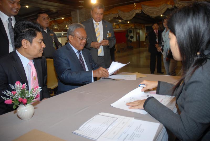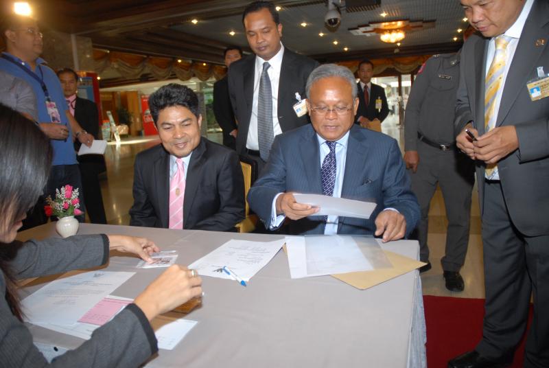 | วันพุธที่ ๑๐ พฤศจิกายน ๒๕๕๓ เวลา ๐๘.๓๐ นาฬิกา ณ บริเวณห้องโถง ชั้นล่าง อาคารรัฐสภา ๑ นายสุเทพ เทือกสุบรรณ สมาชิกสภาผู้แทนราษฎรจังหวัดสุราษฎร์ธานี พรรคประชาธิปัตย์ และนายถิรชัย วุฒิธรรม สมาชิกสภาผู้แทนราษฎรแบบสัดส่วน พรรคเพื่อแผ่นดิน รายงานตัวต่อสำนักงานเลขาธิการสภาผู้แทนราษฎร |