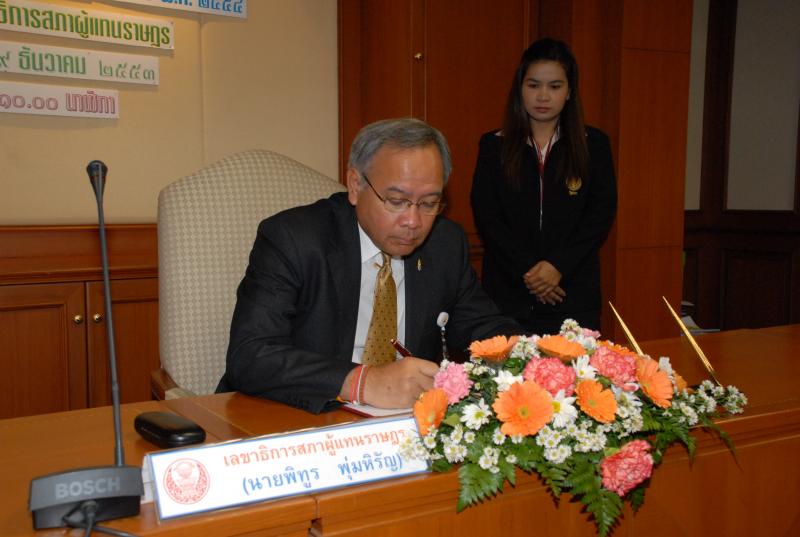 | วันพุธที่ ๒๙ ธันวาคม ๒๕๕๓ เวลา ๑๐.๐๐ นาฬิกา ณ ห้องประชุมกรรมาธิการหมายเลข ๓๗๐๑ ชั้น ๗ อาคารรัฐสภา ๓ นายพิทูร พุ่มหิรัญ เลขาธิการสภาผู้แทนราษฎร ลงนามคำรับรองการปฎิบัติราชการ ประจำปี พ.ศ.๒๕๕๔ ระหว่างเลขาธิการสภาผู้แทนราษฎรกับรองเลขาธิการสภาผู้แทนราษฎร ที่ปรึกษาด้านระบบงานนิติบัญญัติ ที่ปรึกษาด้านกฎหมาย ที่ปรึกษาด้านต่างประเทศ ผู้อำนวยการสำนักนโยบายและแผน ผู้อำนวยการกลุ่มตรวจสอบภายใน และผู้อำนวยการกลุ่มงานผู้นำฝ่ายค้านในสภาผู้แทนราษฎร |