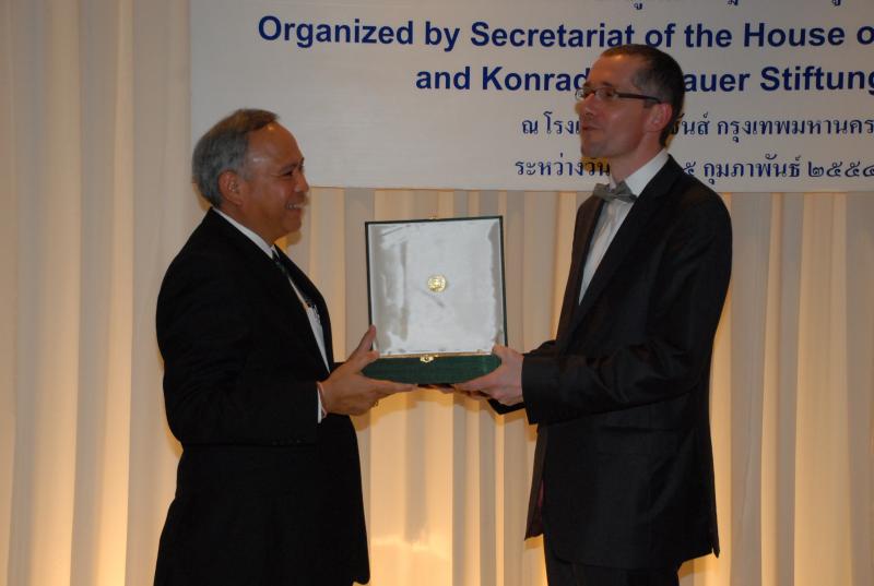 วันจันทร์ที่ ๑๔ กุมภาพันธ์ ๒๕๕๔ เวลา ๐๙.๐๐ นาฬิกา  ณ  โรงแรมโฟร์ซีซั่น  ถนนราชดำริ  เขตปทุมวัน กรุงเทพฯ สำนักงานเลขาธิการสภาผู้แทนราษฎรร่วมกับมูลนิธิคอนราด อาเดนาว์ ประเทศไทย ร่วมจัดโครงการสัมมนาเรื่อง "ระบบการบริหารราชการหน่วยงานสนับสนุนการปฏิบัติงานของรัฐสภาแห่งสหพันธ์สาธารณรัฐเยอรมนี"  ระหว่างวันที่ ๑๔-๑๕ กุมภาพันธ์ ๒๕๕๔ โดยมีข้าราชการของสำนักงานเลขาธิการสภาผู้แทนราษฎรและสำนักงานเลขาธิการวุฒิสภาเข้าร่วมสัมมนา