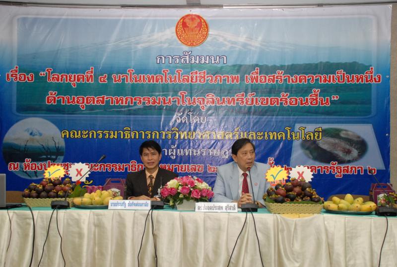 คณะกรรมาธิการการวิทยาศาสตร์และเทคโนโลยี สภาผู้แทนราษฎรจัดสัมมนา เรื่อง "โลกยุคที่ ๔ นาโนเทคโนโลยีชีวภาพ เพื่อสร้างความเป็นหนึ่งด้านอุตสาหกรรมนาโนจุลินทรีย์เขตร้อนชื้น"