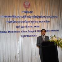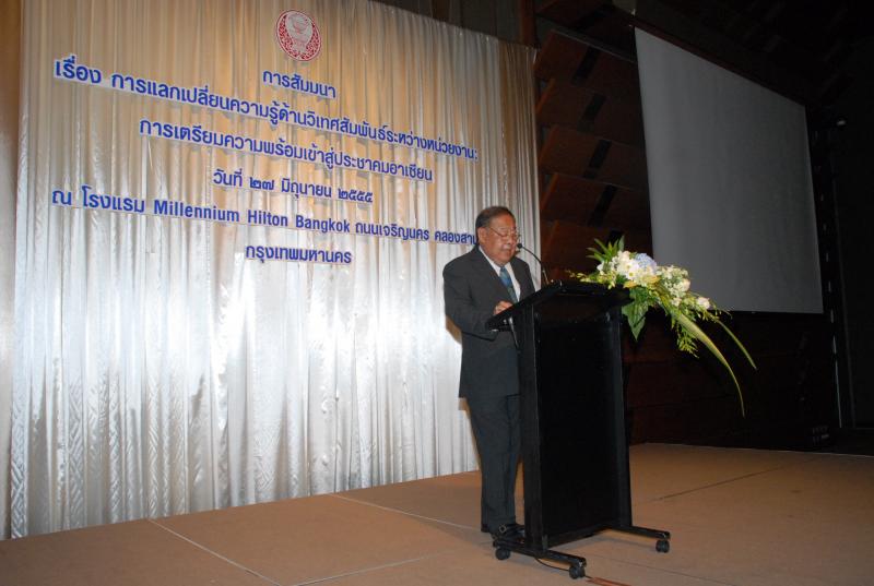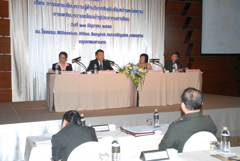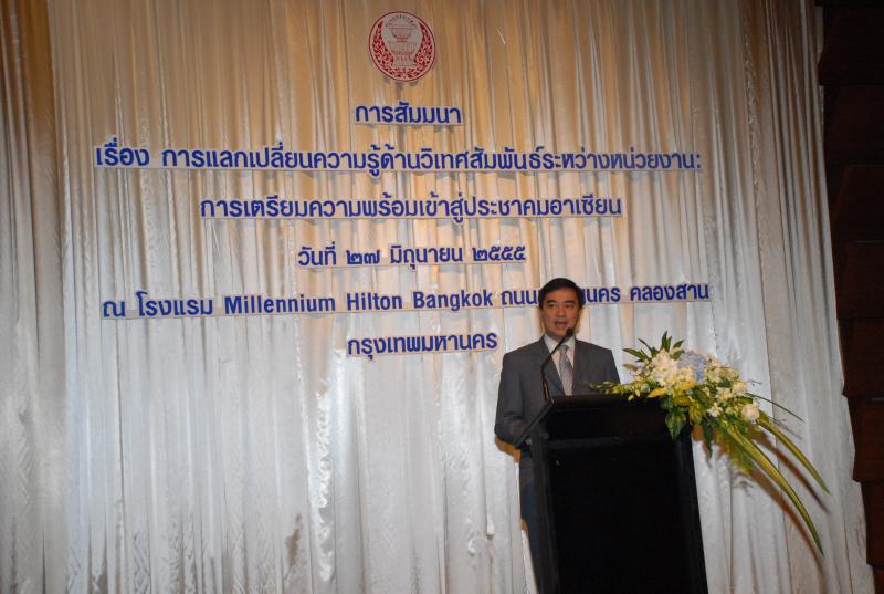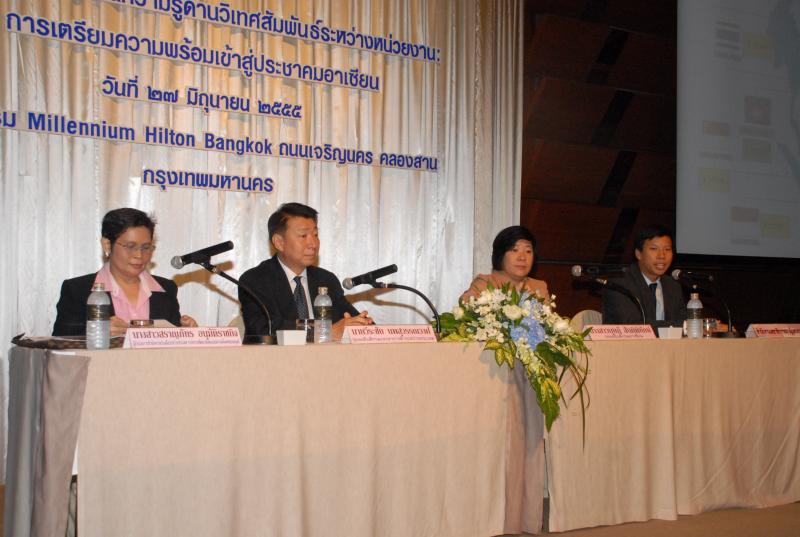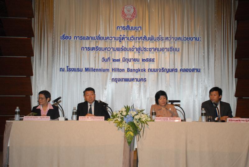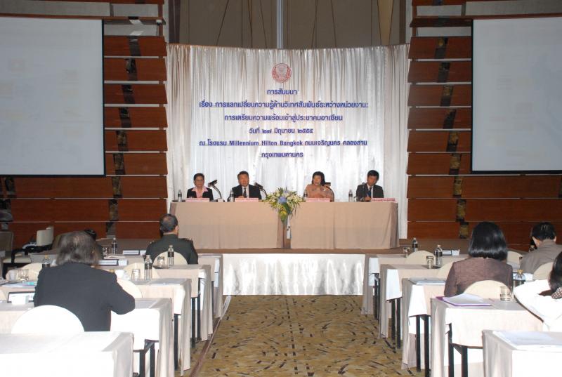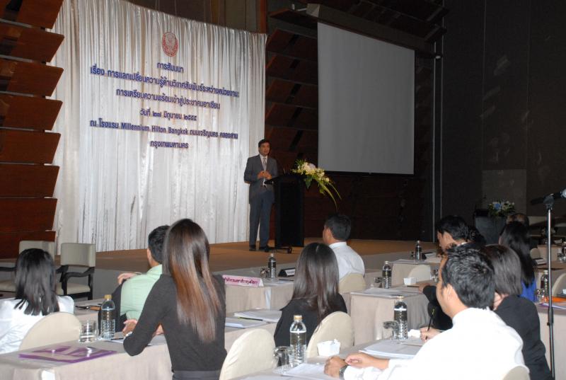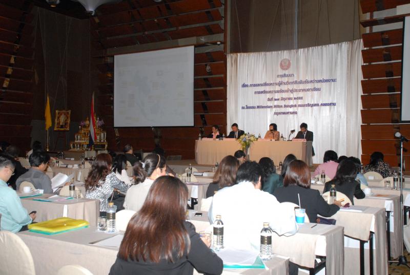 สำนักองค์การรัฐสภาระหว่างประเทศร่วมกับสำนักพัฒนาบุคลากร จัดโครงการสัมมนา เรื่อง "การแลกเปลี่ยนความรู้ด้านวิเทศสัมพันธ์ระหว่างหน่วยงาน การเตรียมความพร้อมเข้าสู่ประชาคมอาเซียน" ณ โรงแรมมิลเลนเนียม ฮิลตัน ถนนเจริญนคร คลองสาน กรุงเทพมหานคร