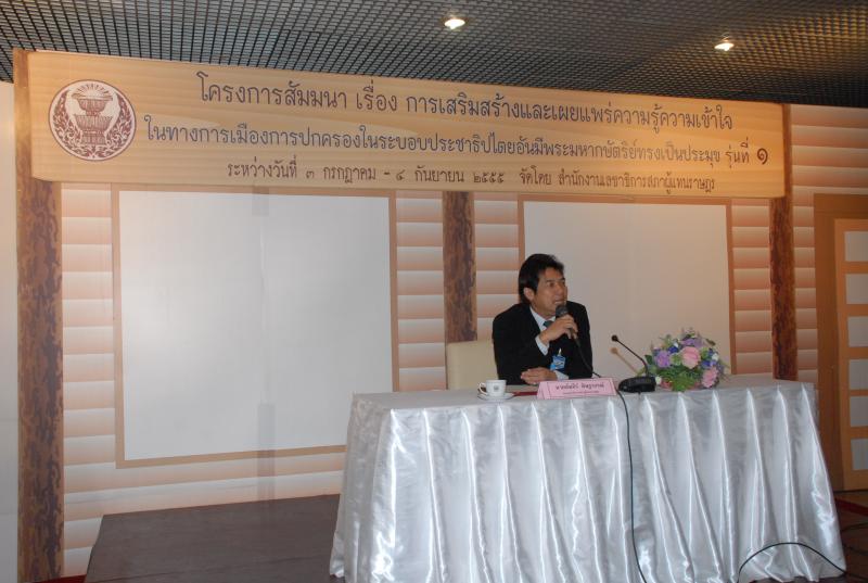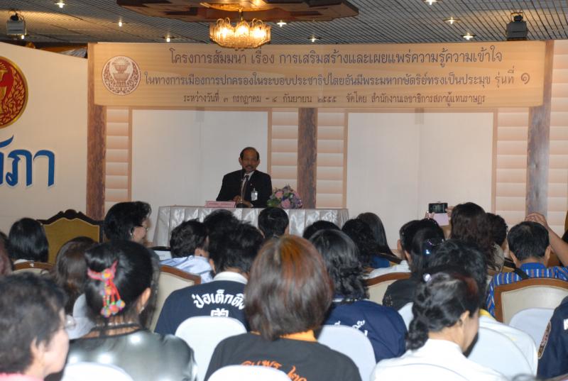 พิธีเปิดการสัมมนาเรื่อง "การเสริมสร้างและเผยแพร่ความรู้ ความเข้าใจในทางการเมืองการปกครองในระบอบประชาธิปไตยอันมีพระมหากษัตริยทรงเป็นประมุข" รุ่นที่ ๑๐