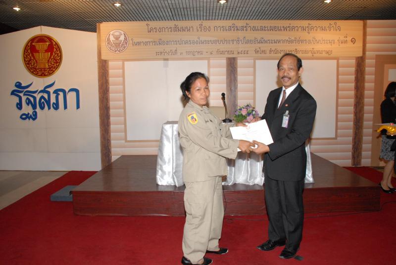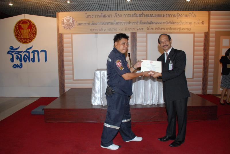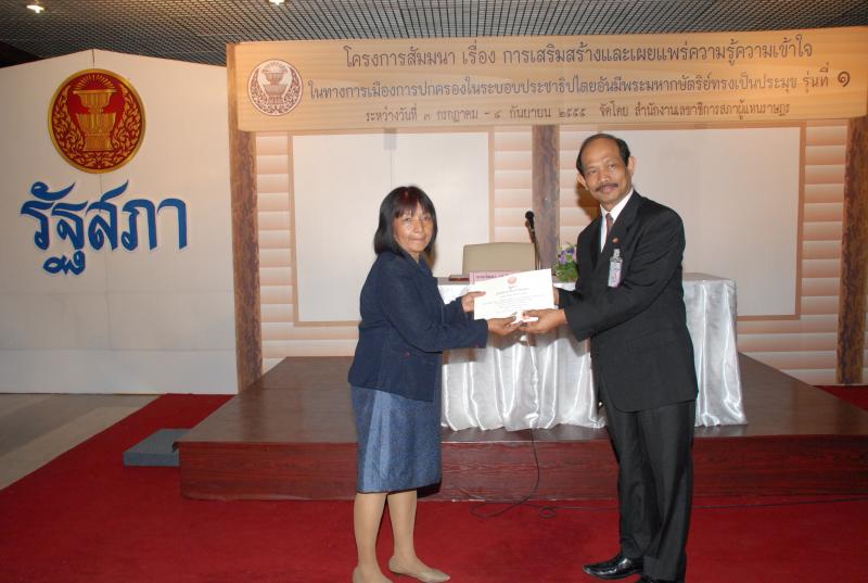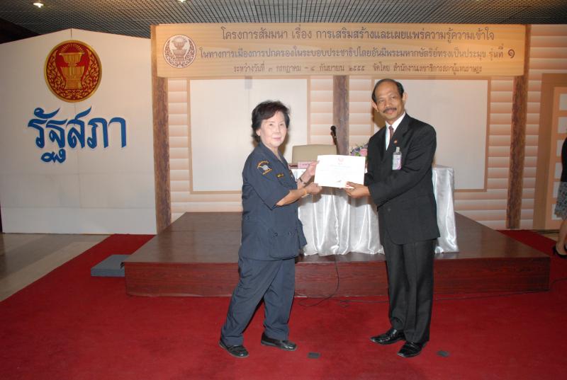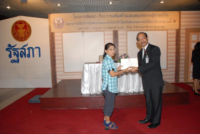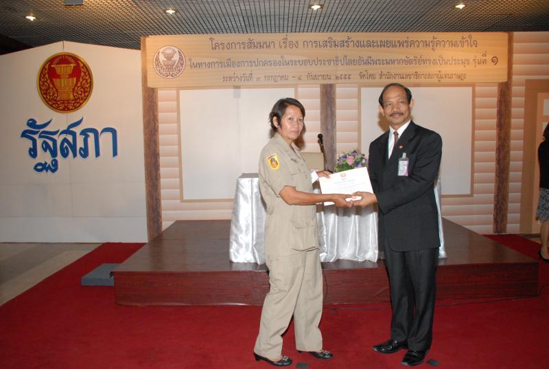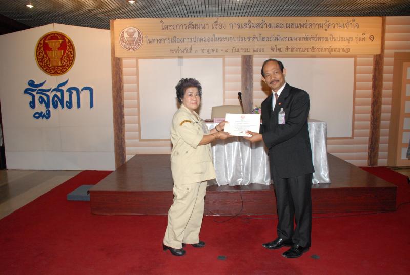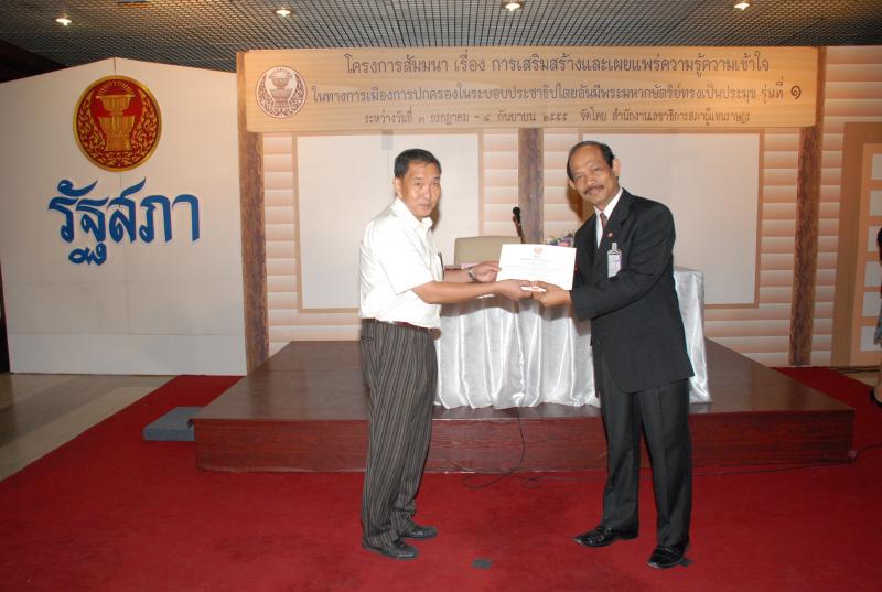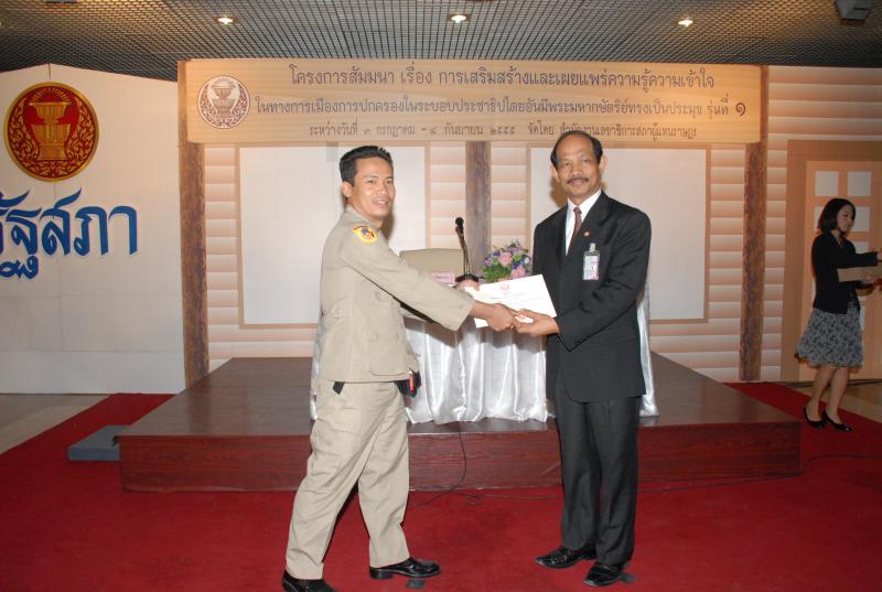 พิธีปิดการสัมมนาเรื่อง "การเสริมสร้างและเผยแพร่ความรู้ ความเข้าใจในทางการเมืองการปกครองในระบอบประชาธิปไตยอันมีพระมหากษัตริยทรงเป็นประมุข" รุ่นที่ ๑๐
